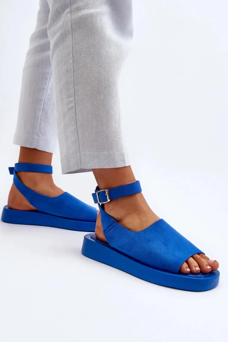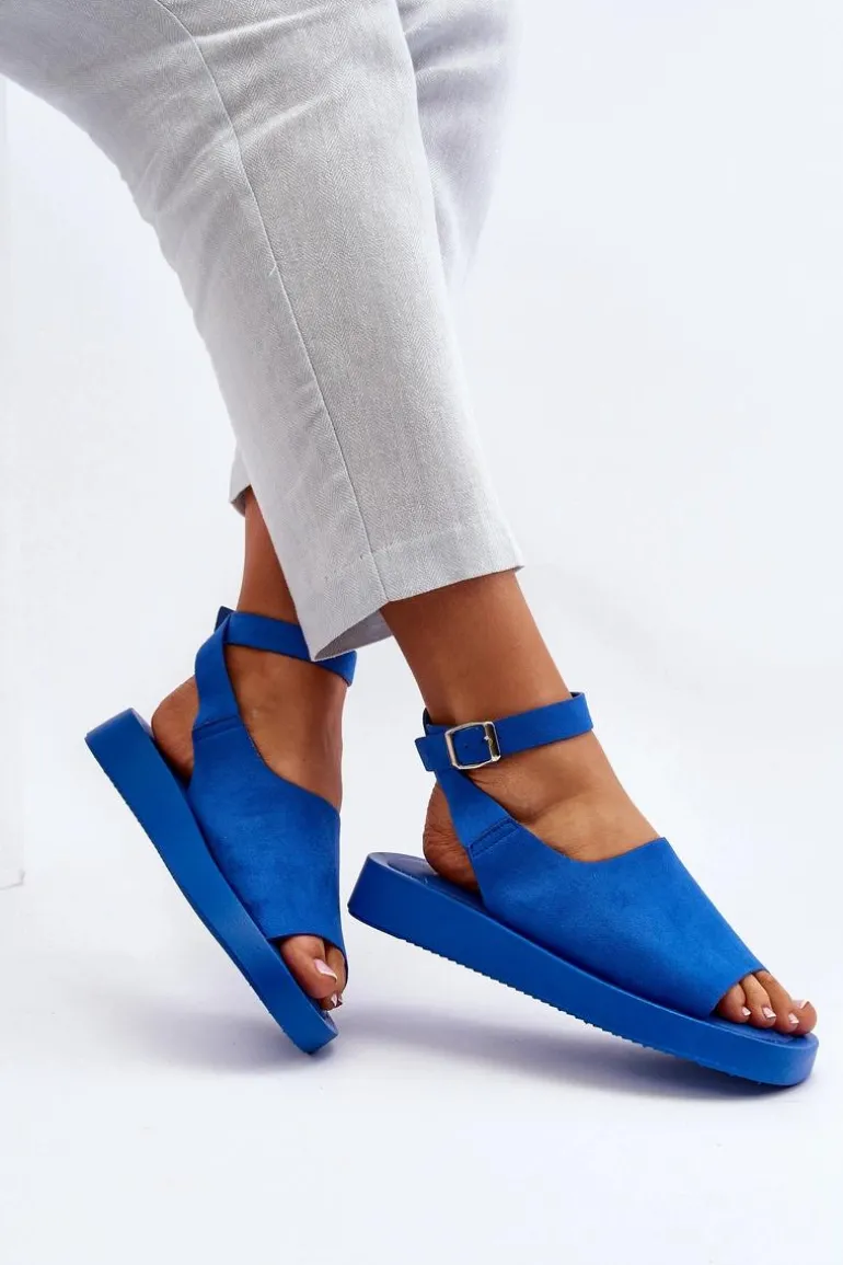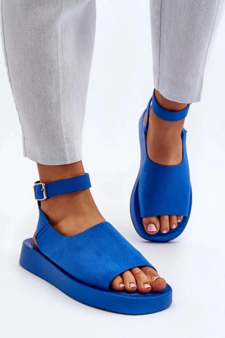 Wyjątkowe sandały damskie na platformie. Buty te zostały wykonane z miłego w dotyku eko zamszu. Posiadają miękką, eko skórzaną wkładkę. Sandałki są zapinane wokół kostki na regulowany pasek ze sprzączką. Ten niezwykły model z pewnością wzbogaci Twoją letnią garderobę! Przy wyborze rozmiaru prosimy sugerować się tabelą rozmiarów.