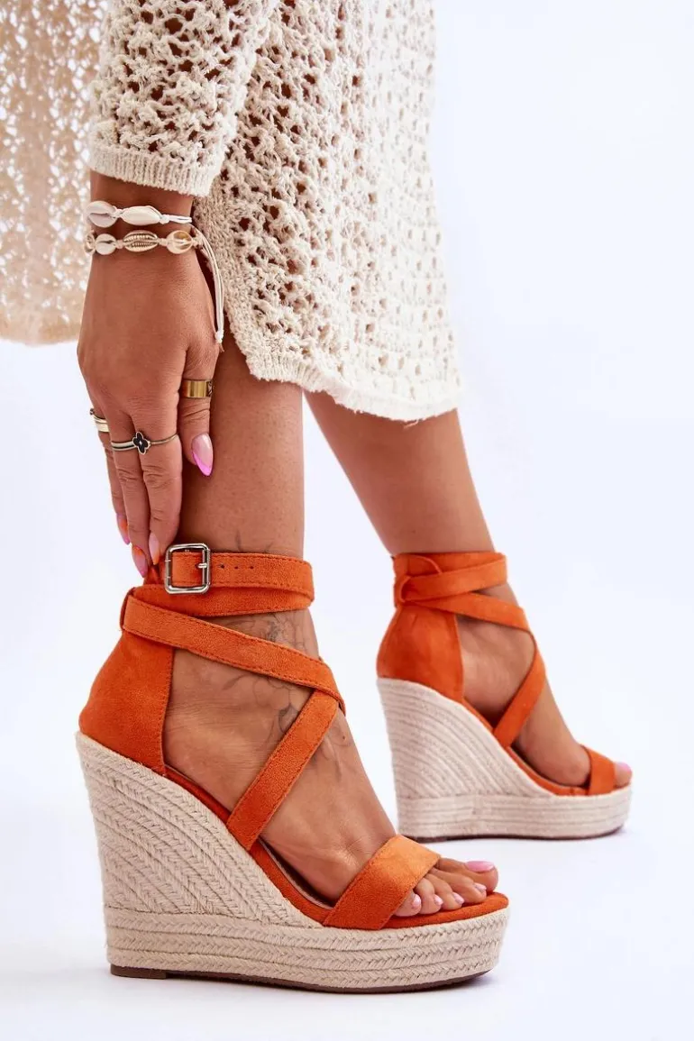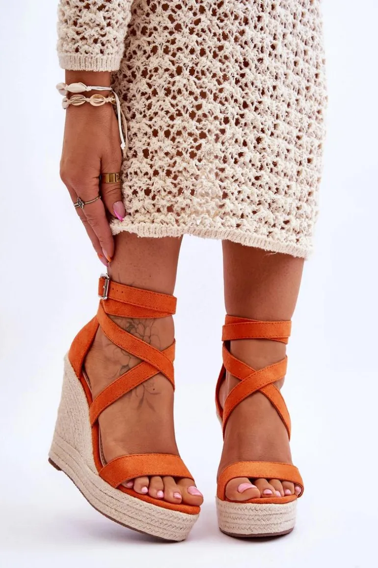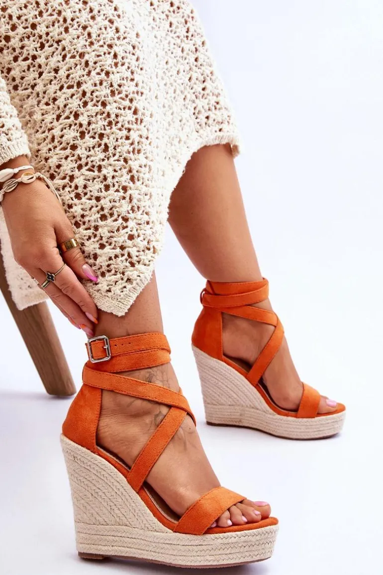 Wygodne Sandały Na Wysokim Koturnie Pomarańczowe Lemira