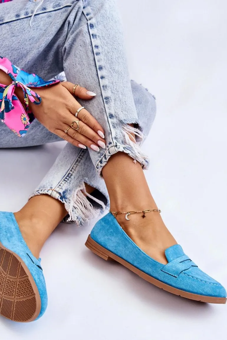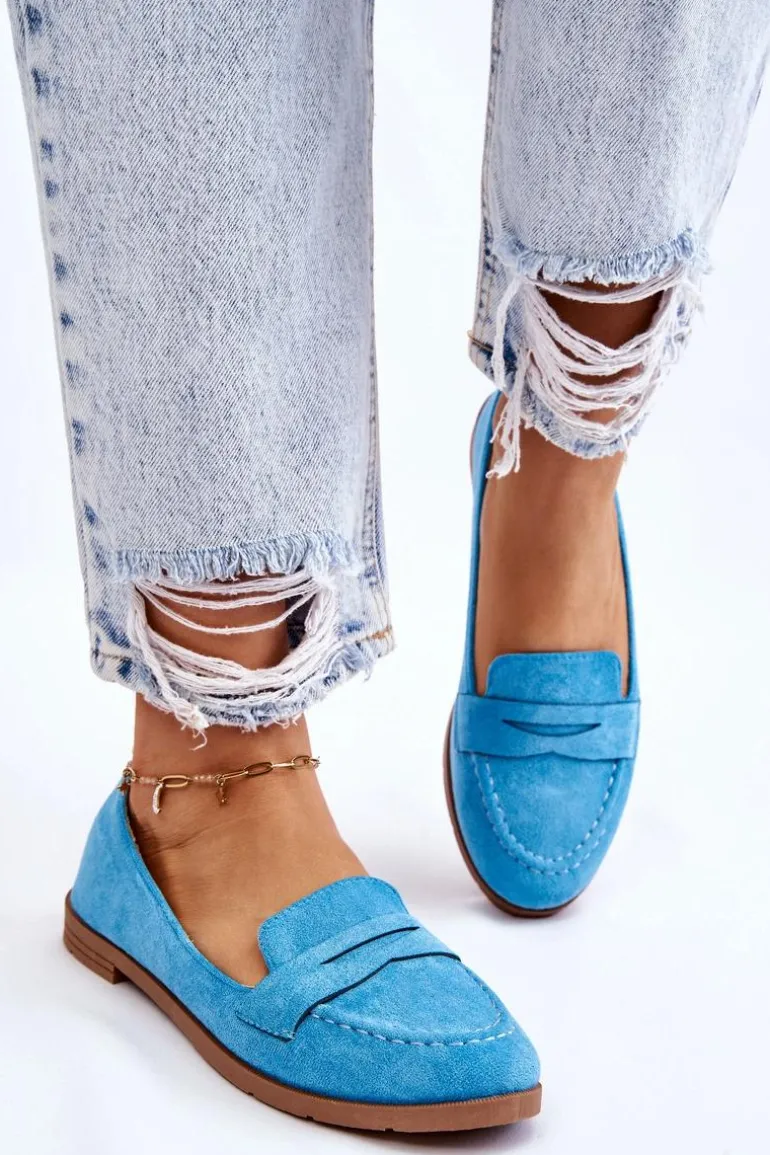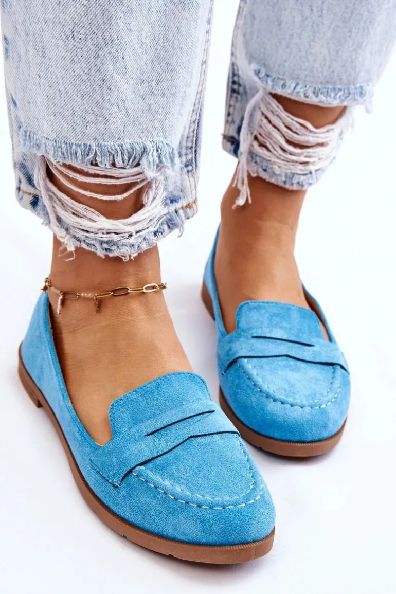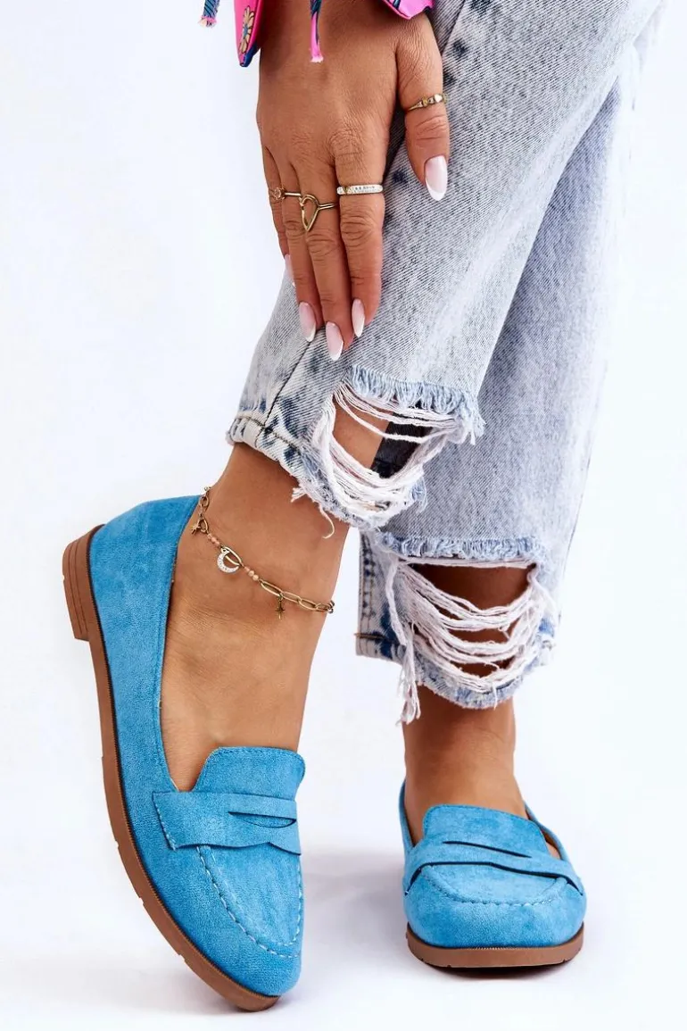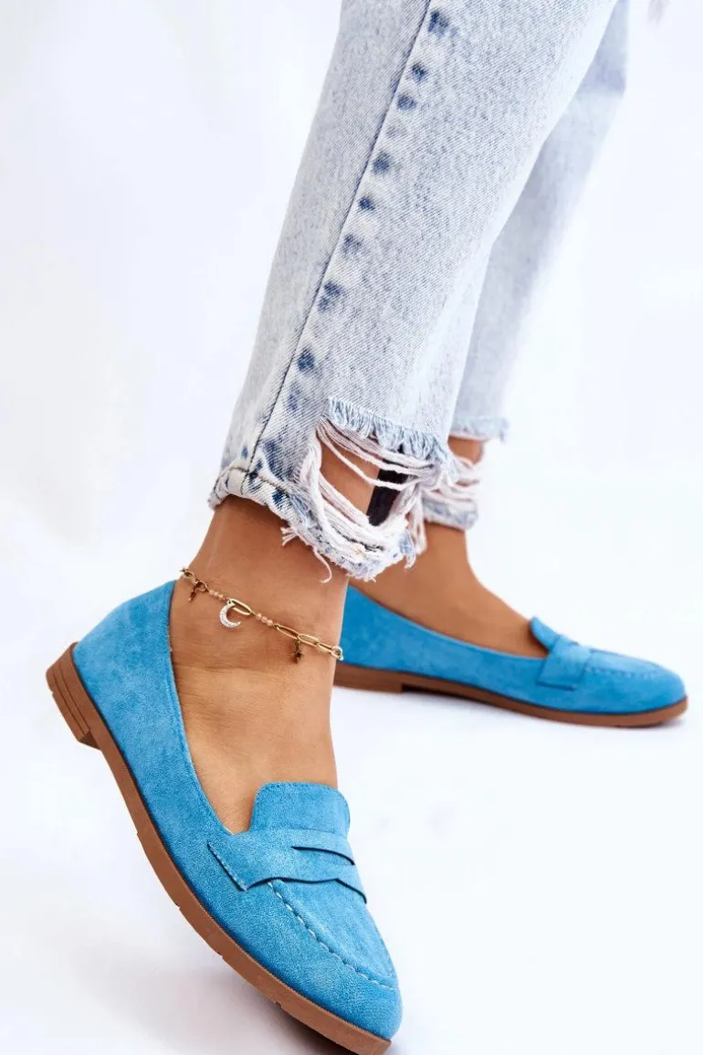 Wygodne Zamszowe Damskie Mokasyny Niebieskie Lucca