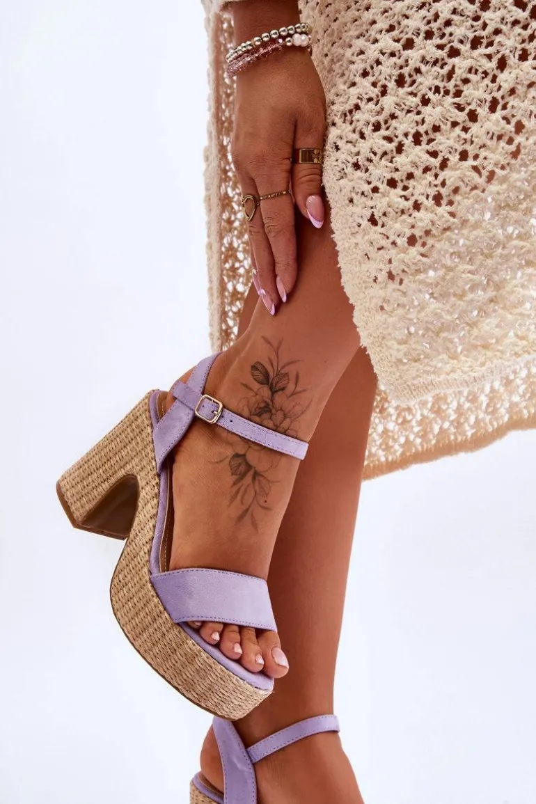 Świetne sandałki na masywnym obcasie w postaci słupka oraz platformie. Wykonane z przyjemnej w dotyku ekologicznej skóry. Sandałki posiadają odkryty, zaokrąglony nosek. Zapinane wokół kostki na regulowany pasek ze sprzączką. Ten model z pewnością sprawdzi się w wielu stylizacjach! Przy wyborze rozmiaru prosimy sugerować się tabelą rozmiarów.
