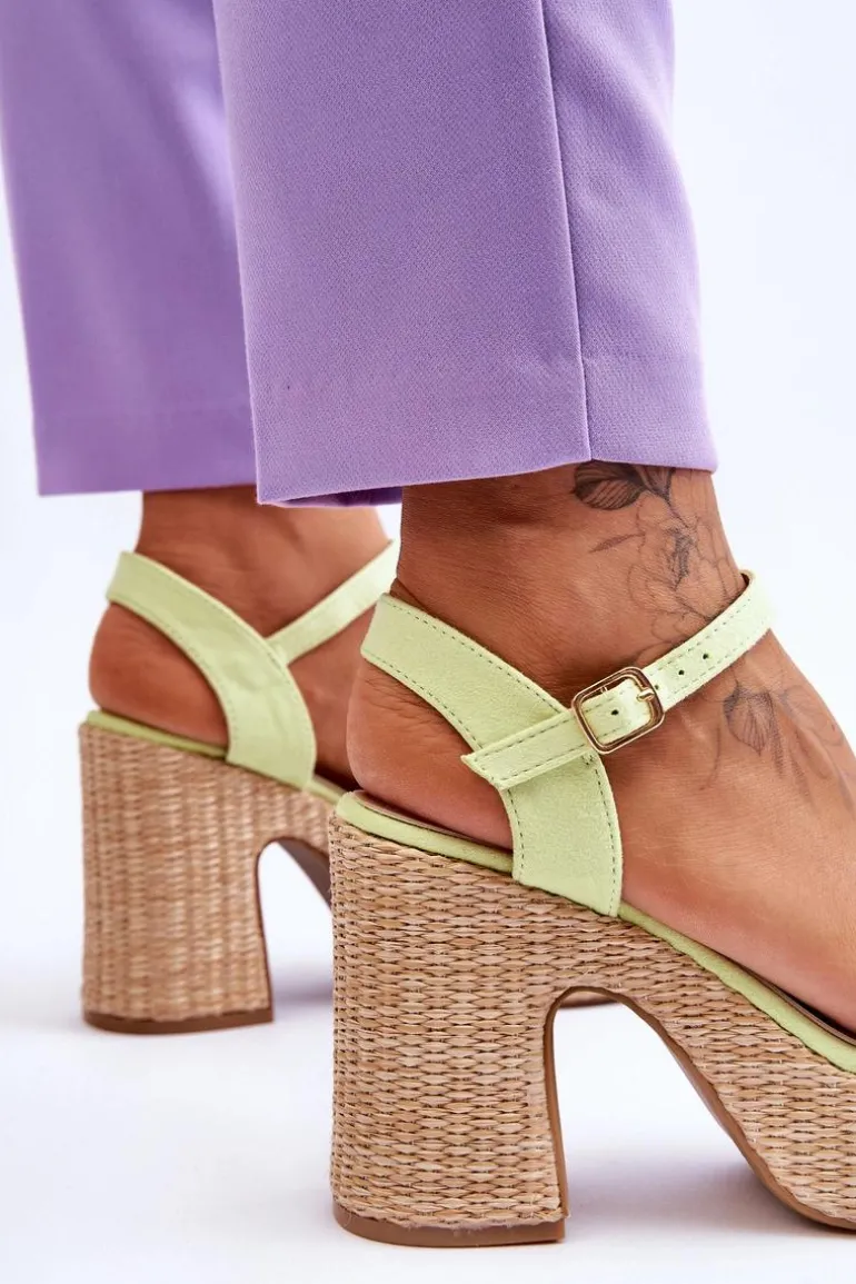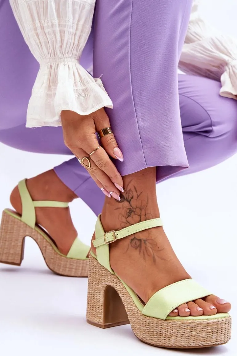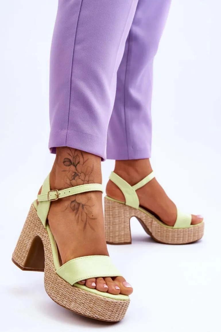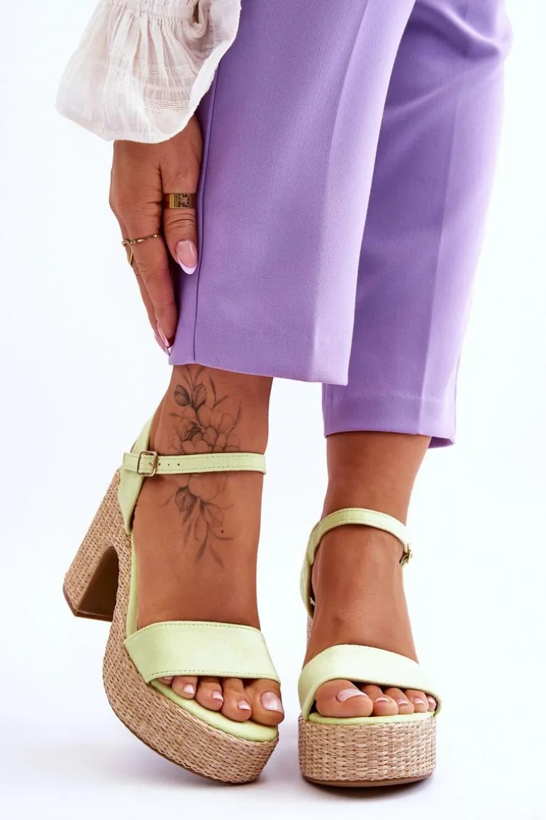Świetne sandałki na masywnym obcasie w postaci słupka oraz platformie. Wykonane z przyjemnej w dotyku ekologicznej skóry. Sandałki posiadają odkryty, zaokrąglony nosek. Zapinane wokół kostki na regulowany pasek ze sprzączką. Ten model z pewnością sprawdzi się w wielu stylizacjach! Przy wyborze rozmiaru prosimy sugerować się tabelą rozmiarów.