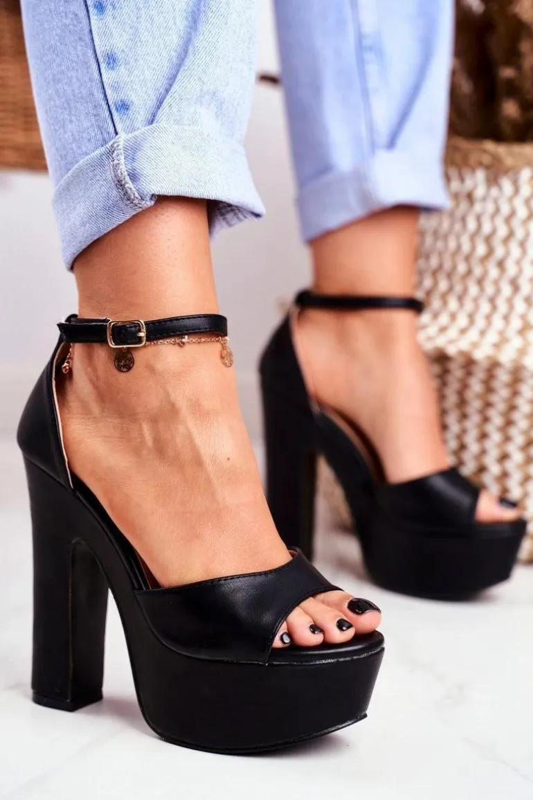 Wysokie Czarne Sandały na Słupku Platforma HighShoes