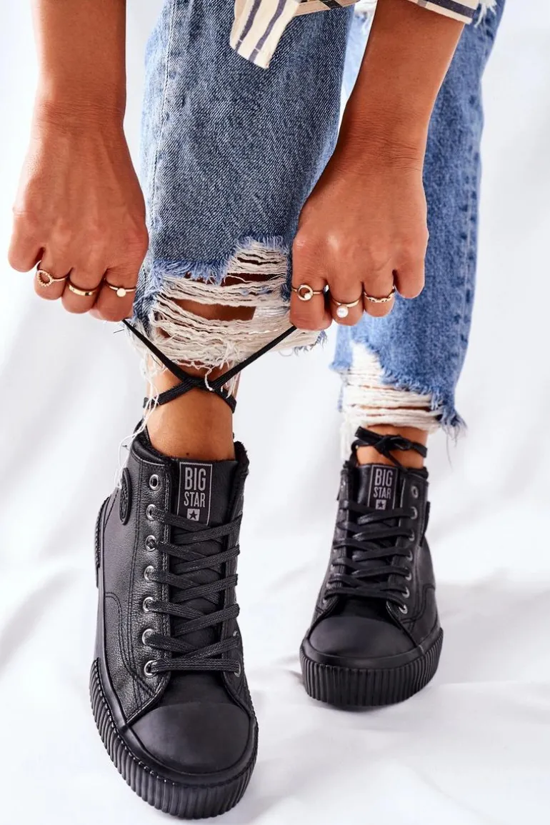 Wysokie trampki BIG STAR z suwakiem. Trampki posiadają delikatne ocieplenie w postaci koca obuwniczego. Antypoślizgowa, solidna podeszwa to gwarancja bezpieczeństwa. Buty posiadają ozdobny emblemat. Koniecznie sprawdź naszą kolekcję BIG STAR! Przy wyborze rozmiaru prosimy sugerować się tabelą rozmiarów.