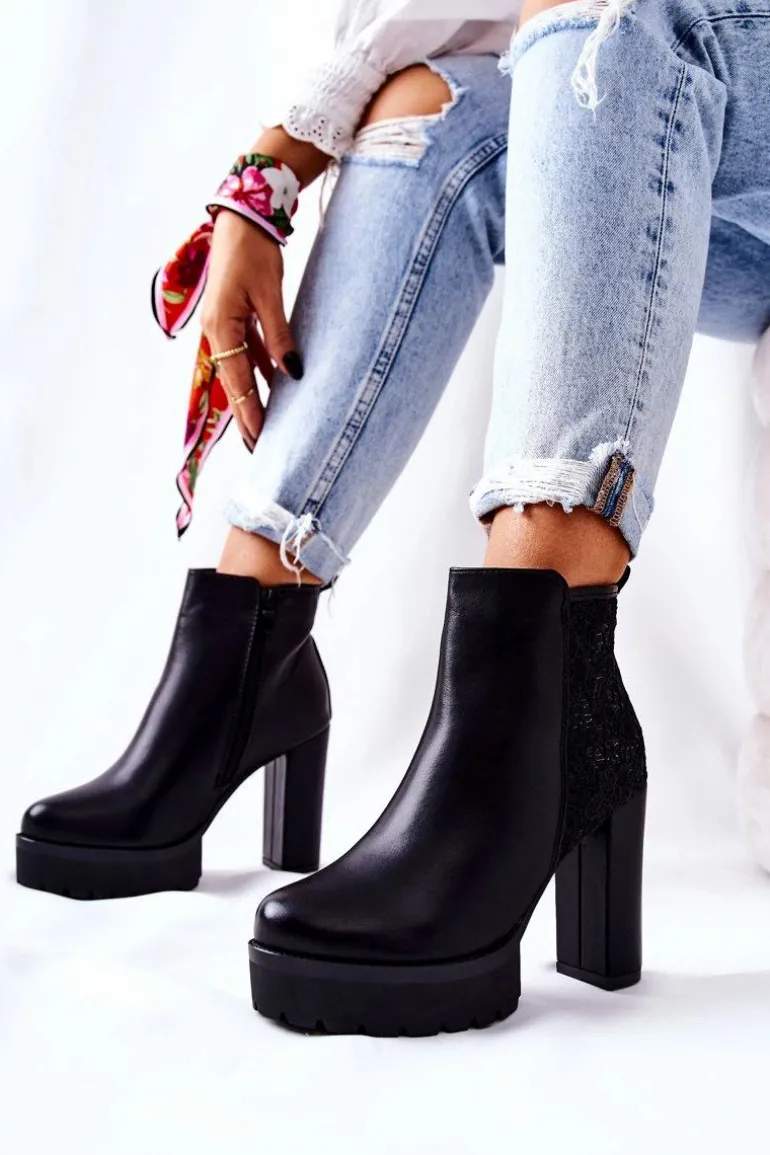 Botki to nie tylko buty na chłodne dni. Świetnie sprawdzą się również przy jesiennych stylizacjach. Wykonane z eko skóry. Z boku cholewki znajduje się ozdobny haft. Stabilny słupek uniesie i wyeksponuje Twoją sylwetkę. Zapinane na suwak. Botki są ocieplane w środku kocem obuwniczym. Przy wyborze rozmiaru prosimy sugerować się tabelą rozmiarów.