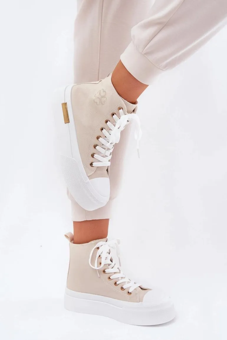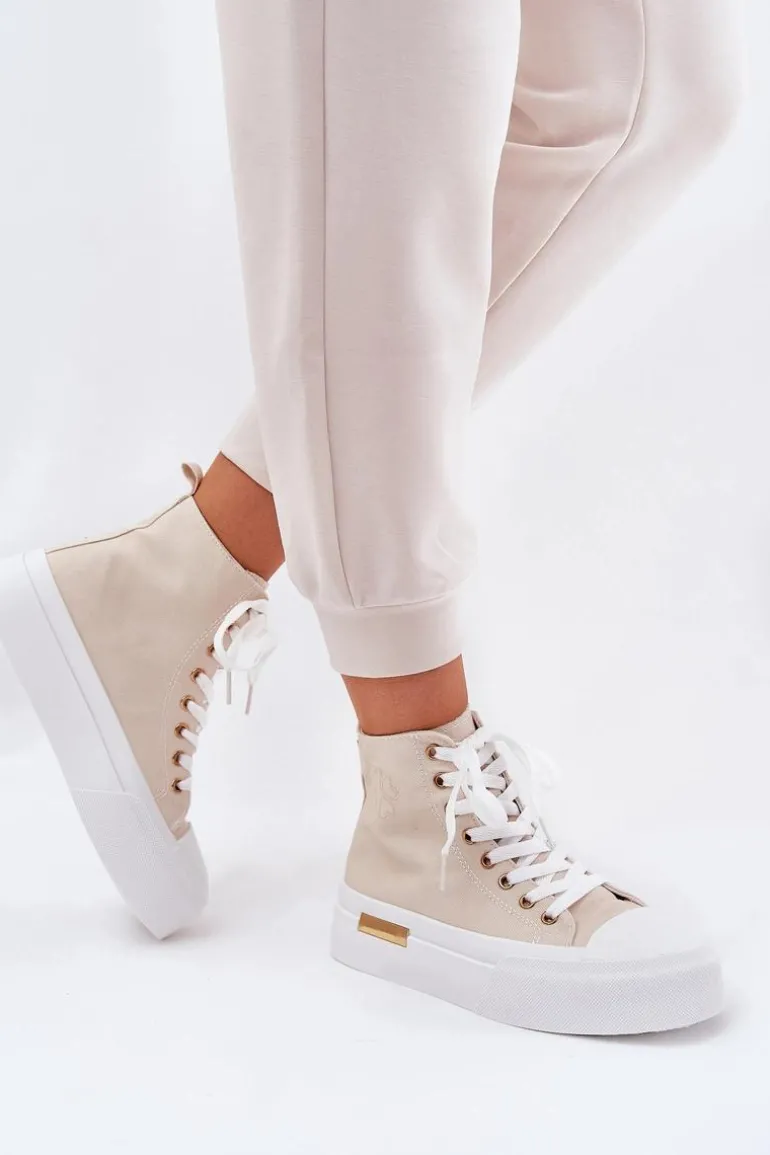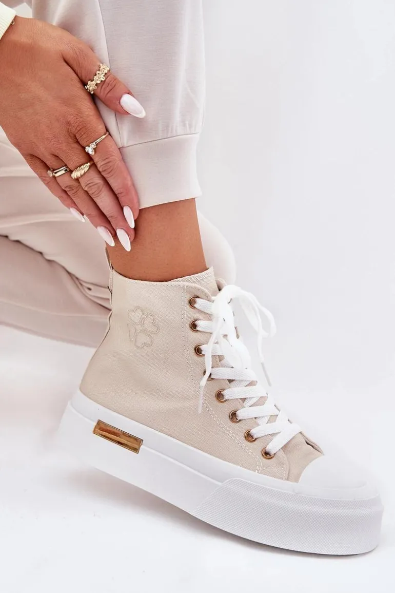 Wysokie Trampki Damskie Na Platformie Beżowe Laviriona