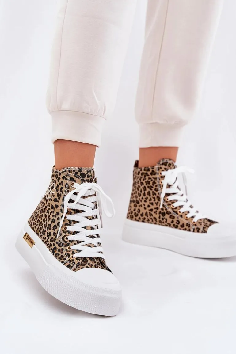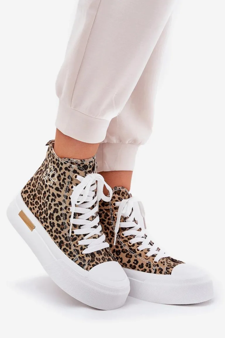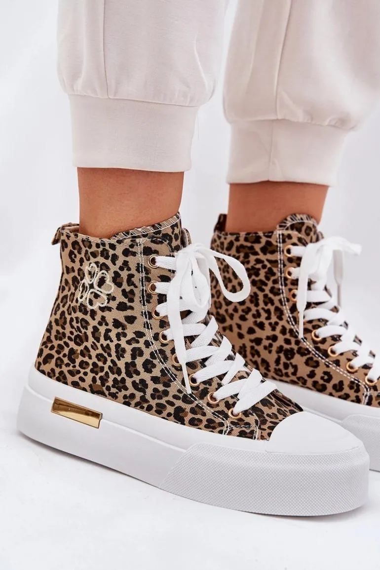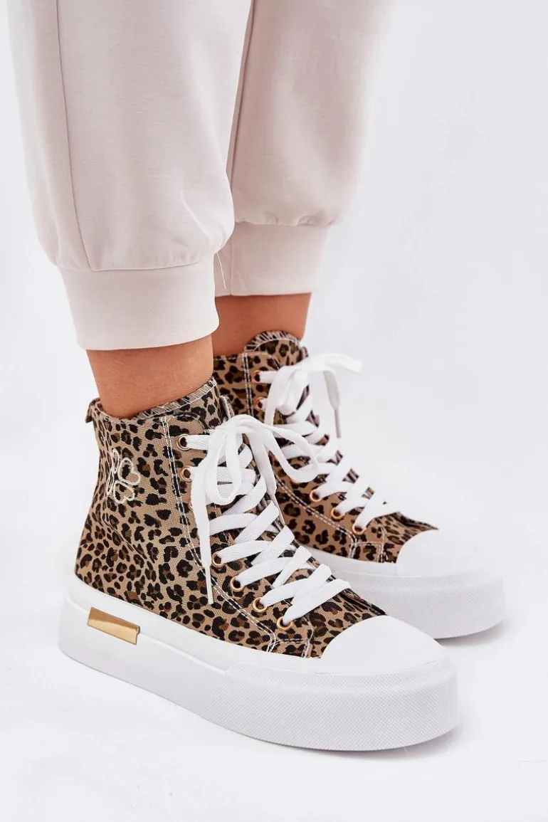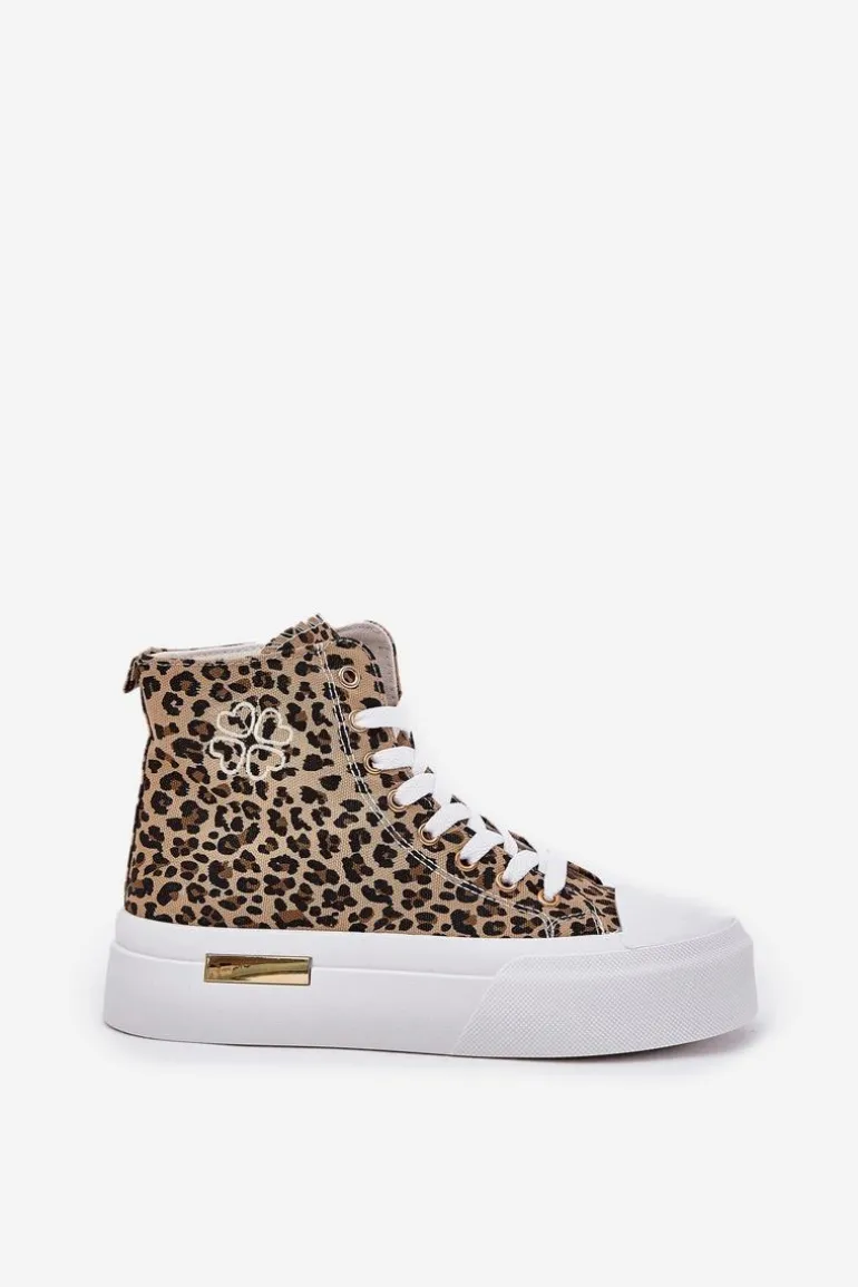 Wysokie Trampki Damskie W Panterkę Na Platformie Brązowe Laviriona