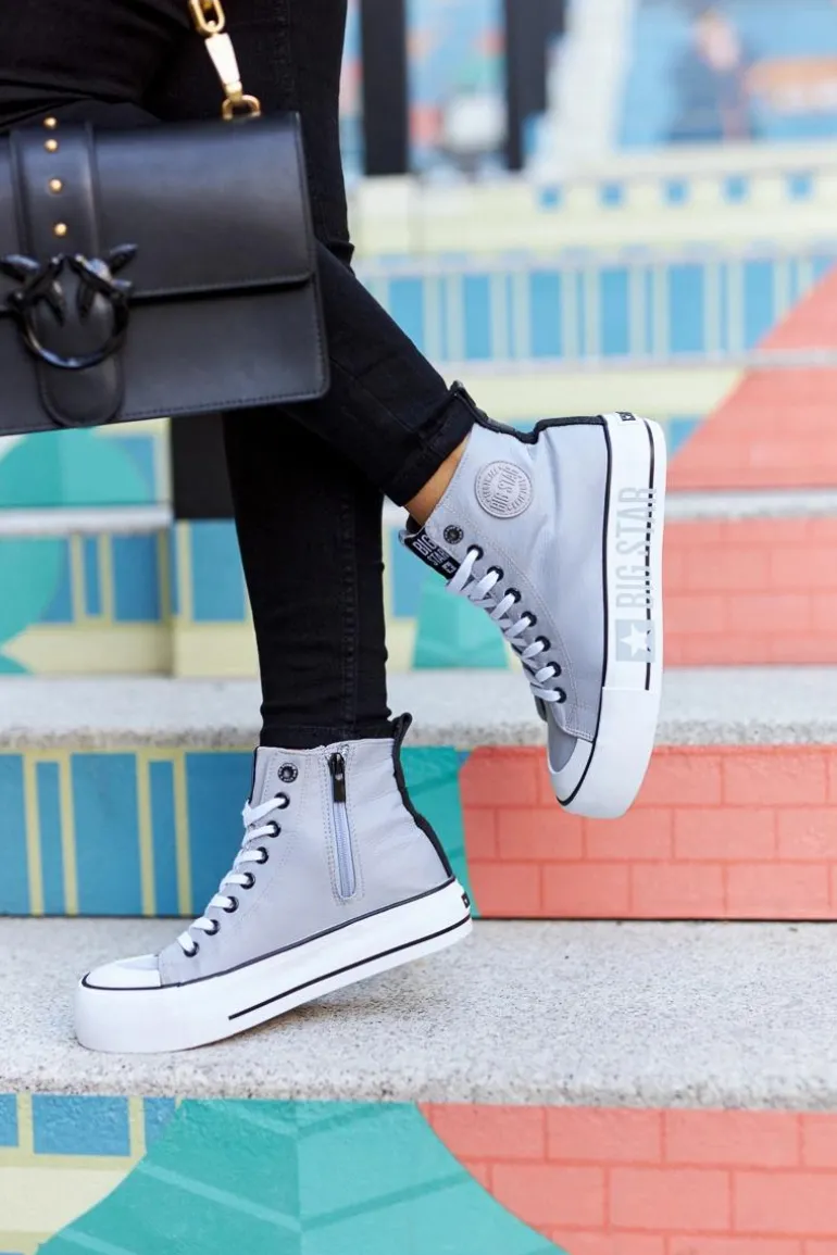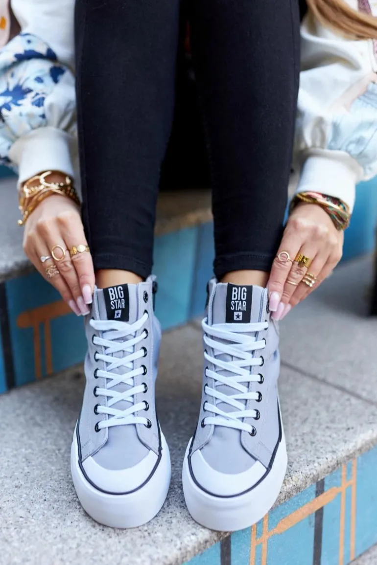 Damskie trampki polskiej marki BIG STAR. Kultowe już trampki pasują do wielu stylizacji. Buty dobrze dopasowują się do kształtu stopy, posiadają miękką, materiałową wkładkę oraz antypoślizgową podeszwę. Wykonane są z odpornej na zabrudzenia tkaniny. Koniecznie sprawdź całą naszą kolekcję butów BIG STAR. Przy wyborze rozmiaru prosimy sugerować się tabelą rozmiarów.