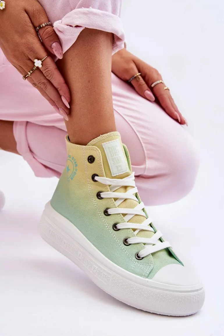 Damskie, wysokie trampki zostały wykonane z materiału tekstylnego. Z boku cholewki posiadają ozdobne logo marki Big Star. Miękka, materiałowa wkładka zapewni wygodę podczas użytkowania. Osadzone na delikatnej platformie z antypoślizgową podeszwą. Model klasycznie sznurowany. Koniecznie sprawdź całą naszą kolekcję butów marki BIG STAR. Przy wyborze rozmiaru prosimy sugerować się tabelą rozmiarów.