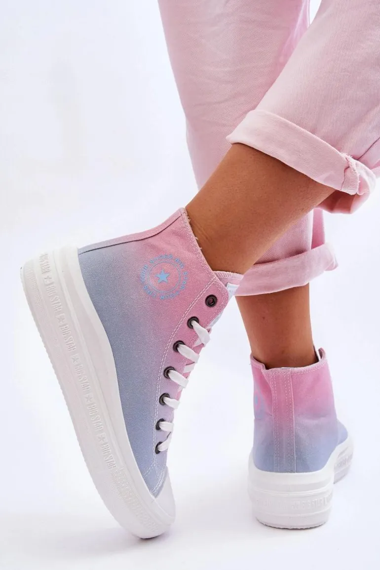 Damskie, wysokie trampki zostały wykonane z materiału tekstylnego. Z boku cholewki posiadają ozdobne logo marki Big Star. Miękka, materiałowa wkładka zapewni wygodę podczas użytkowania. Osadzone na delikatnej platformie z antypoślizgową podeszwą. Model klasycznie sznurowany. Koniecznie sprawdź całą naszą kolekcję butów marki BIG STAR. Przy wyborze rozmiaru prosimy sugerować się tabelą rozmiarów.