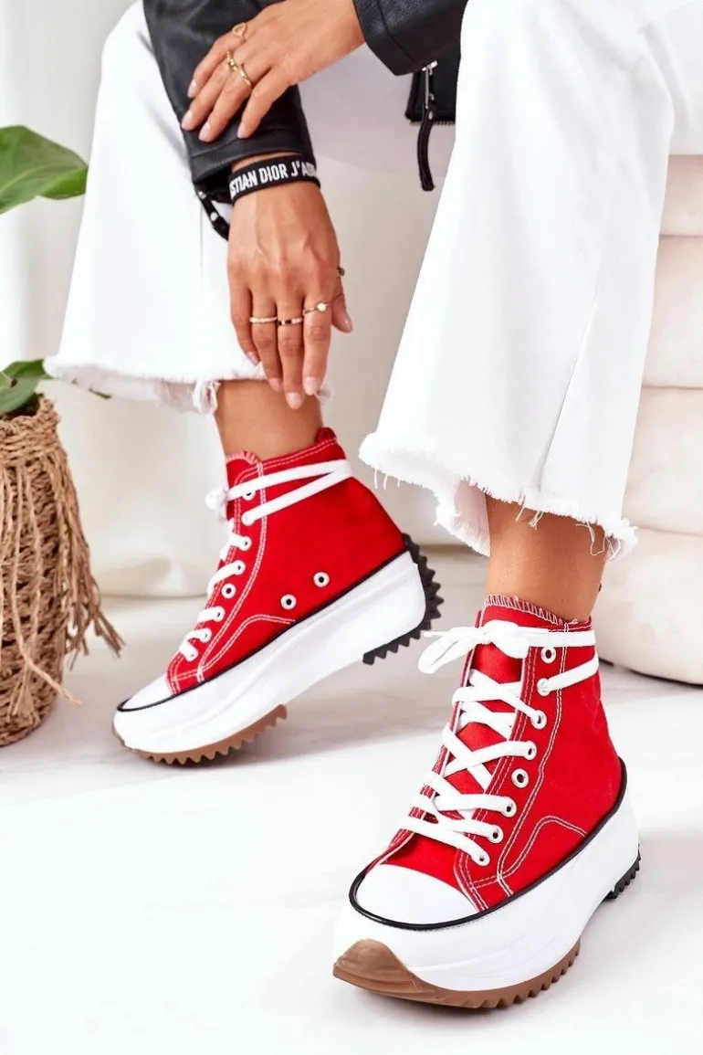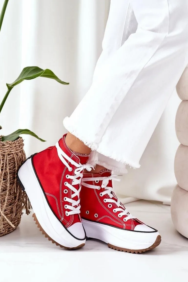 Wyjątkowe trampki na platformie. Buty dobrze dopasowują się do kształtu stopy, posiadają miękką, materiałową wkładkę oraz antypoślizgową podeszwę. Koniecznie sprawdź całą naszą kolekcję trampek! Przy wyborze rozmiaru prosimy sugerować się tabelą rozmiarów.