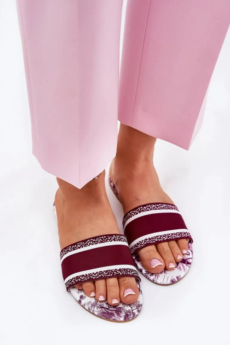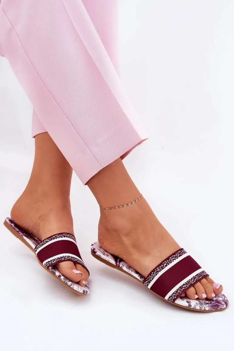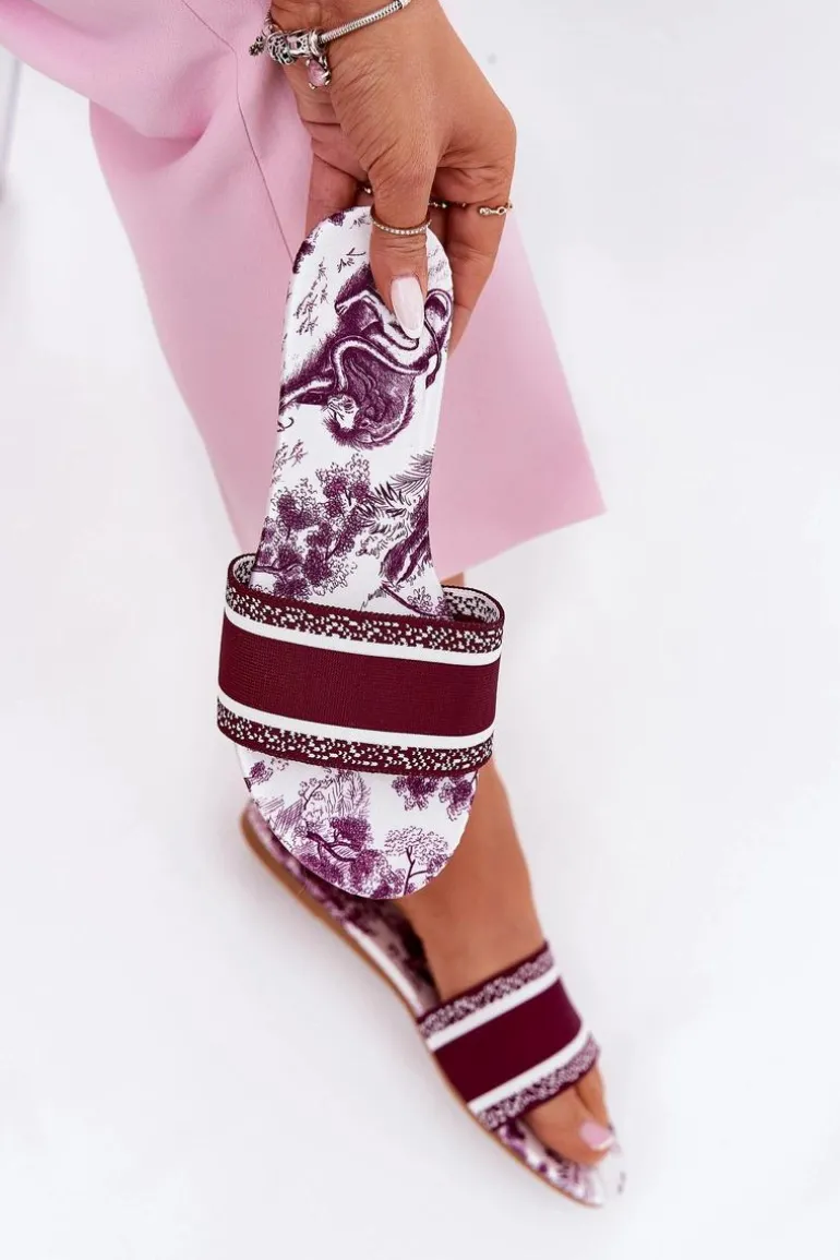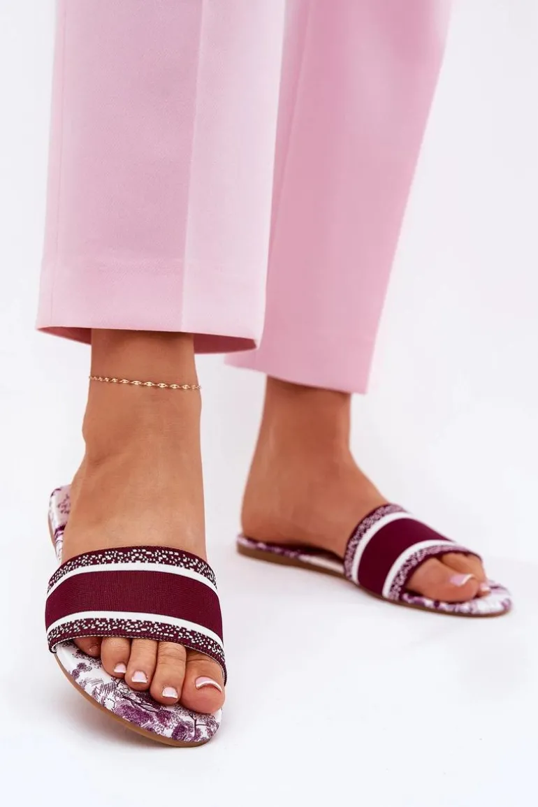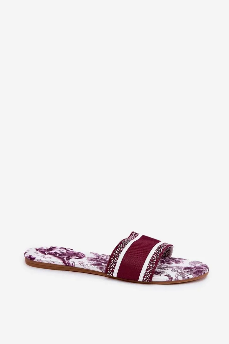 Wzorzyste Płaskie Klapki Damskie Bordowe Leysi