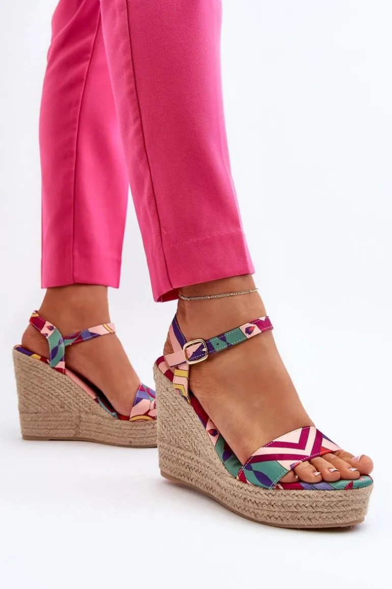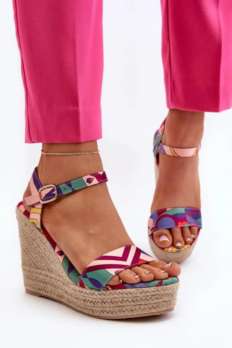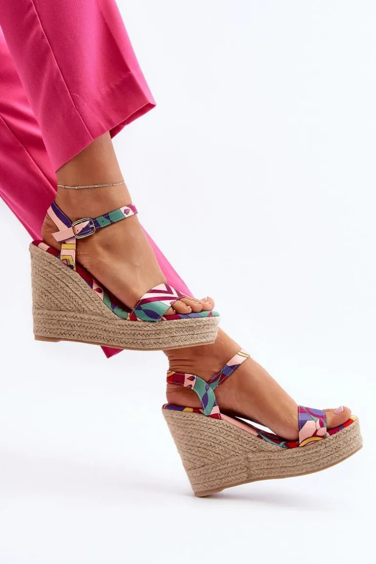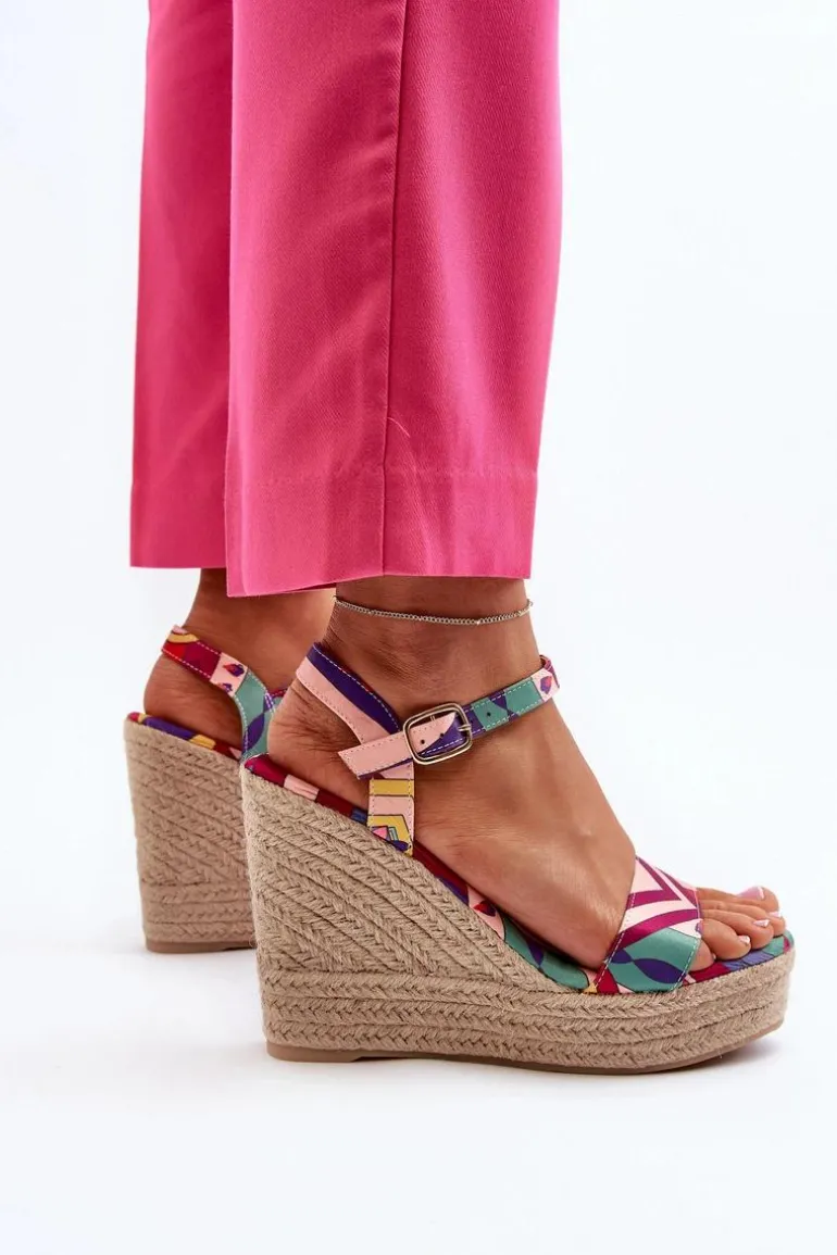 Sandały damskie na platformie i koturnie z jutową plecionką to wyjątkowy dodatek do letnich stylizacji. Zapinane na regulowany pasek ze sprzączką, zapewniają doskonałe dopasowanie. Ich wzorzysty design i wykonanie z materiału tekstylnego dodają oryginalności i świeżości każdej letniej kreacji. Idealnie komponują się zarówno z sukienkami, jak i spódnicami oraz spodniami! Przy wyborze rozmiaru prosimy sugerować się tabelą rozmiarów.