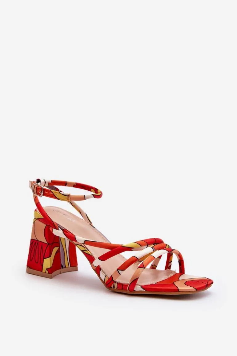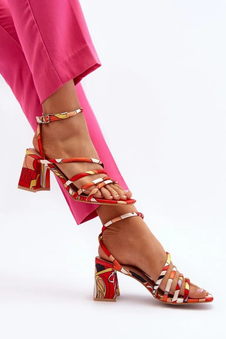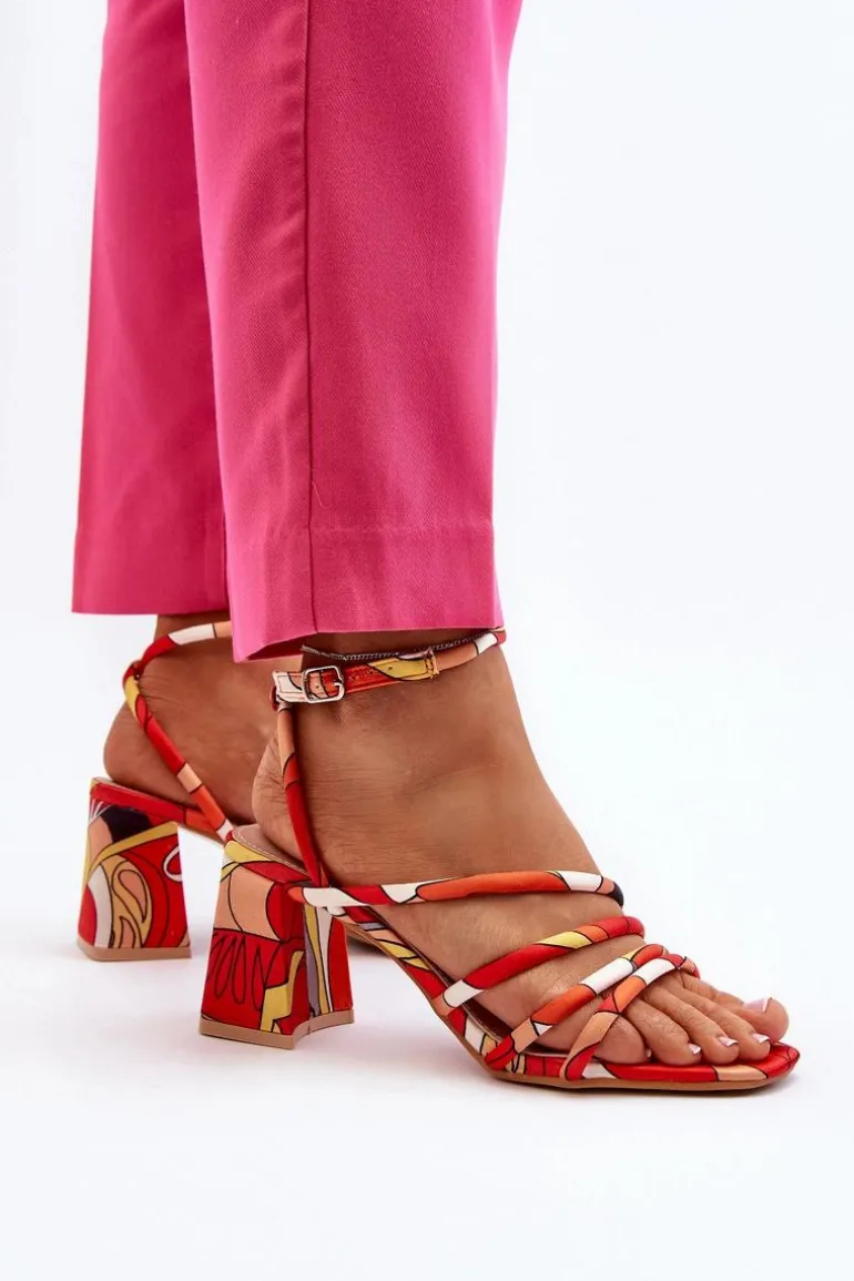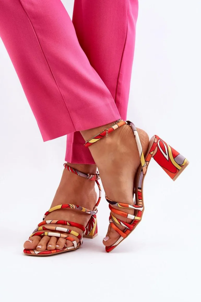 Wzorzyste Sandały Na Słupku Pomarańczowe Jenglla
