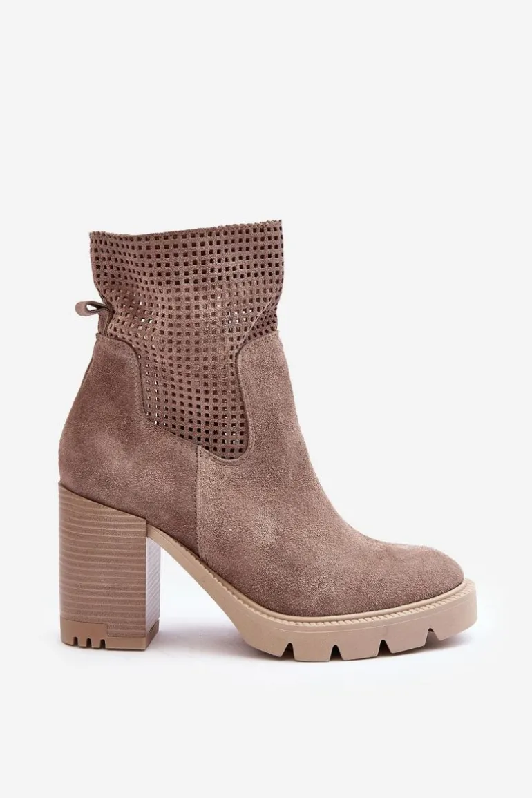 Modne, ażurowe botki na obcasie w postaci słupka zostały wykonane z wysokiej jakości skóry naturalnej. Zapinane na suwak z boku cholewki. Miękka, niezwykle wygodna wkładka została wykonana również z naturalnej skóry. Świetny model do wielu stylizacji! Przy wyborze rozmiaru prosimy sugerować się tabelą rozmiarów.
