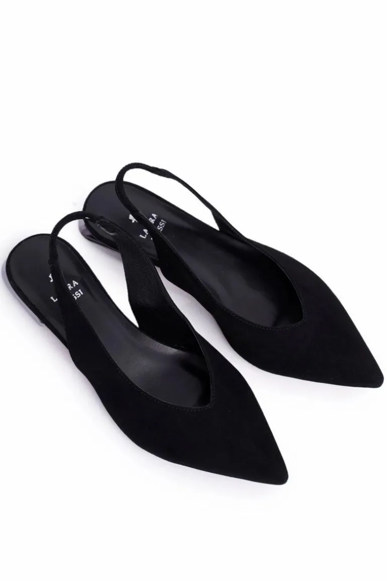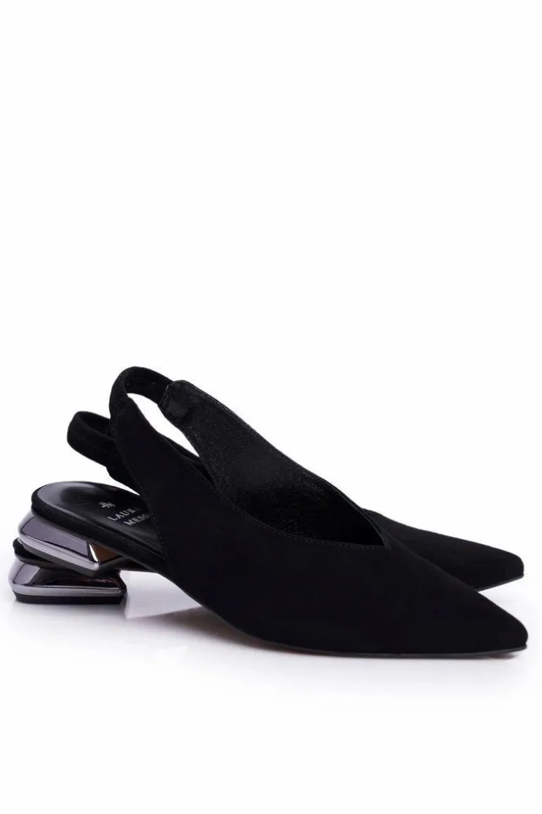 Zamszowe Baleriny Na Srebrnym Obcasie Laura Messi 2127 Czarne