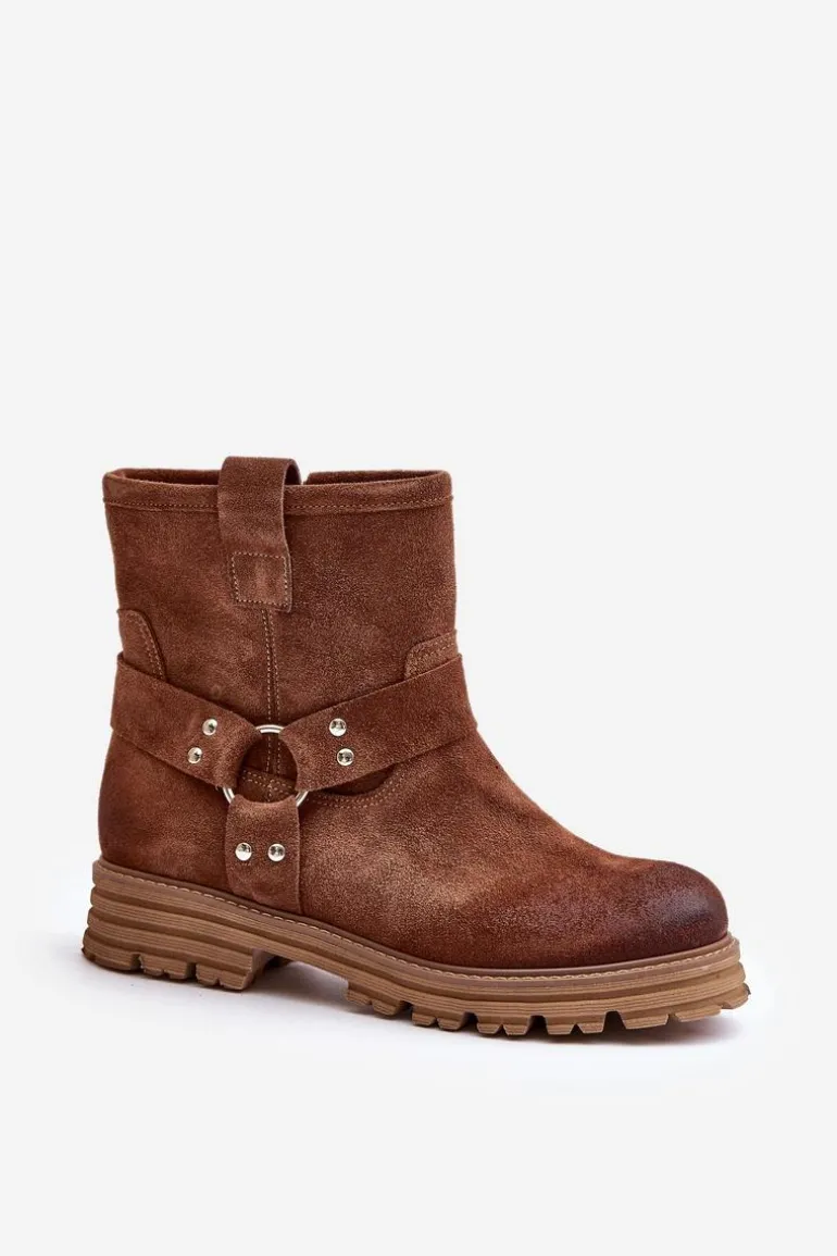 Botki wykonane z naturalnego zamszu to idealny wybór na każdą okazję. Osadzone na płaskim obcasie, zapewniają komfort i stabilność podczas chodzenia. Zaokrąglone noski dodają subtelnego charakteru. Model zapinany na zamek, co ułatwia zakładanie. Cholewka ozdobiona efektownym połączeniem pasków, które dodają stylowego akcentu. Te botki świetnie sprawdzą się w codziennych stylizacjach, łącząc elegancję z wygodą. Przy wyborze rozmiaru prosimy sugerować się tabelą rozmiarów.