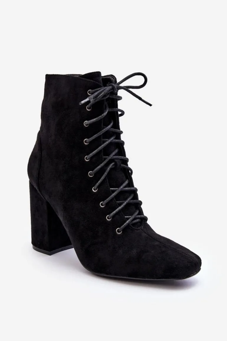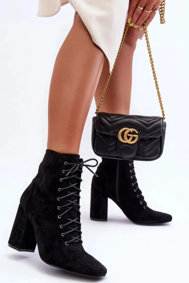 Klasyczne damskie botki zostały wykonane z eko zamszu. Osadzone na obcasie w postaci słupka. Buty te posiadają usztywniany zapiętek. Zapinane są na zamek i posiadają dodatkowe sznurowanie co umożliwia lepsze dopasowanie buta do tęgości nogi. Przy wyborze rozmiaru prosimy sugerować się tabelą rozmiarów.
