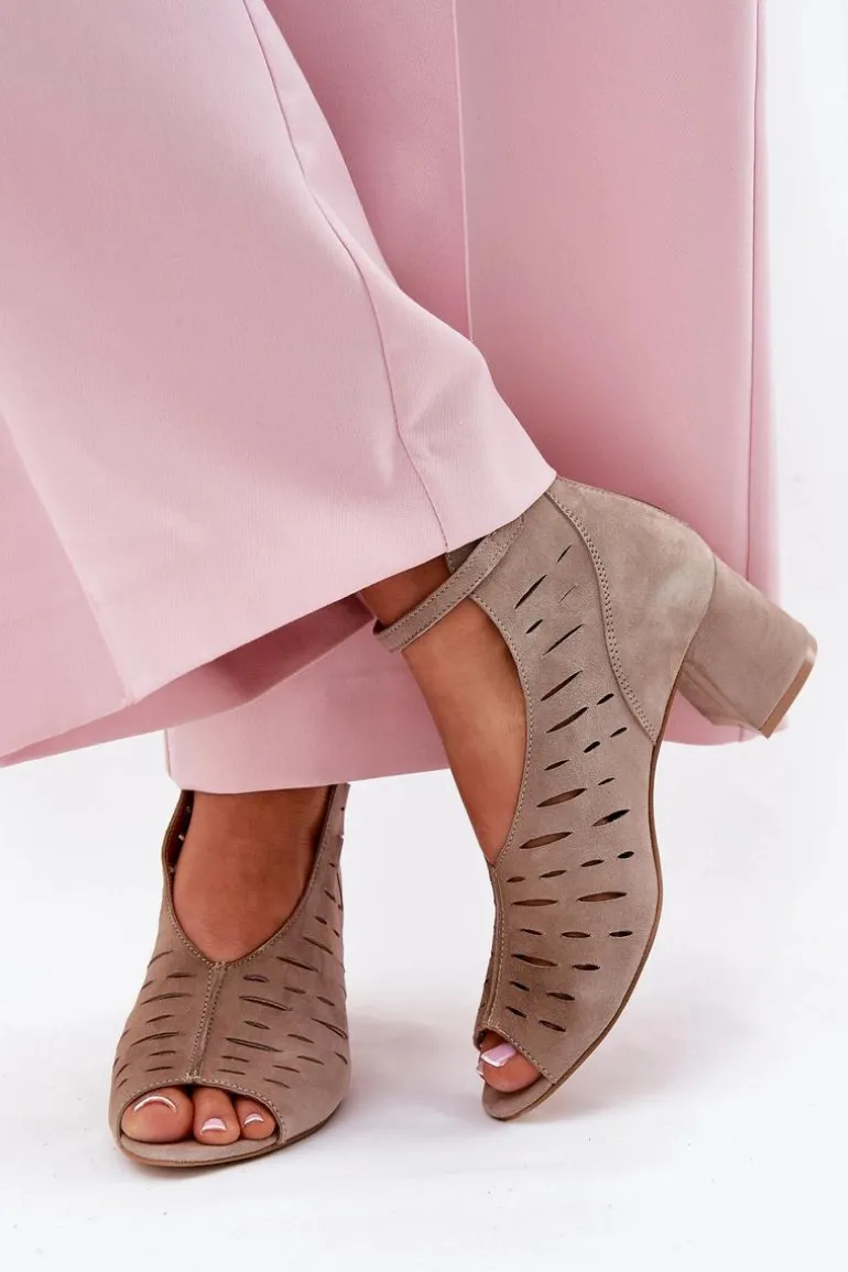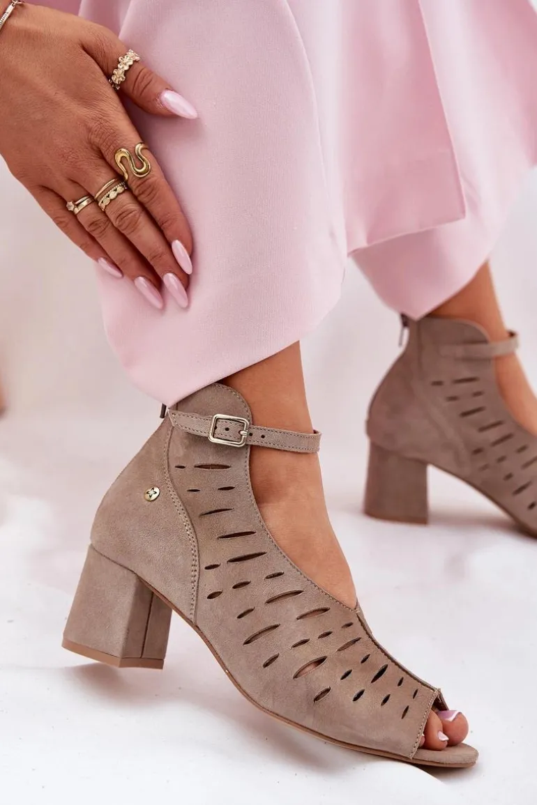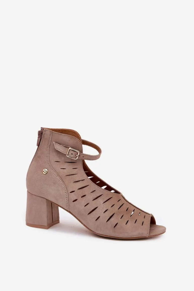 Zamszowe Botki Damskie Na Słupku Maciejka 06893-10 Ciemnobeżowe