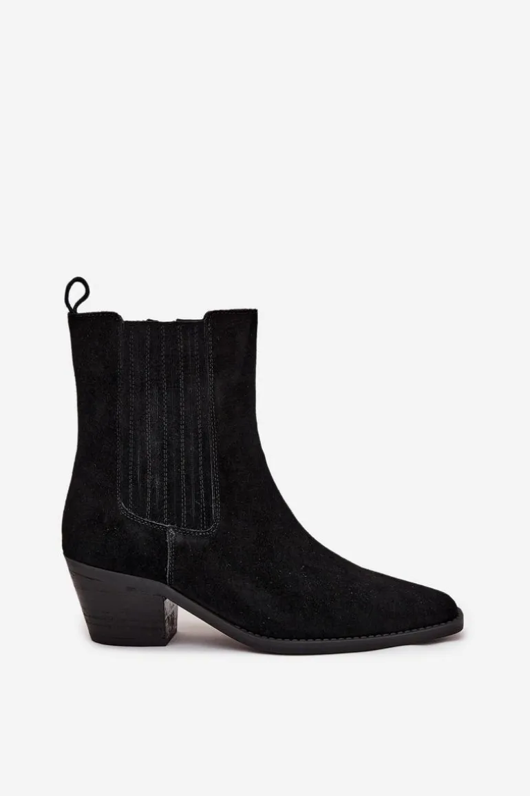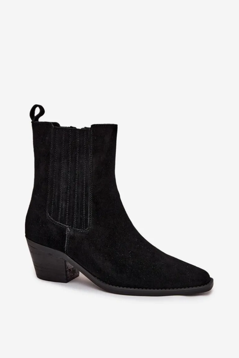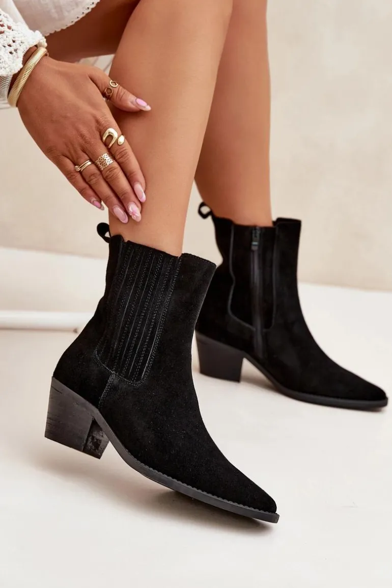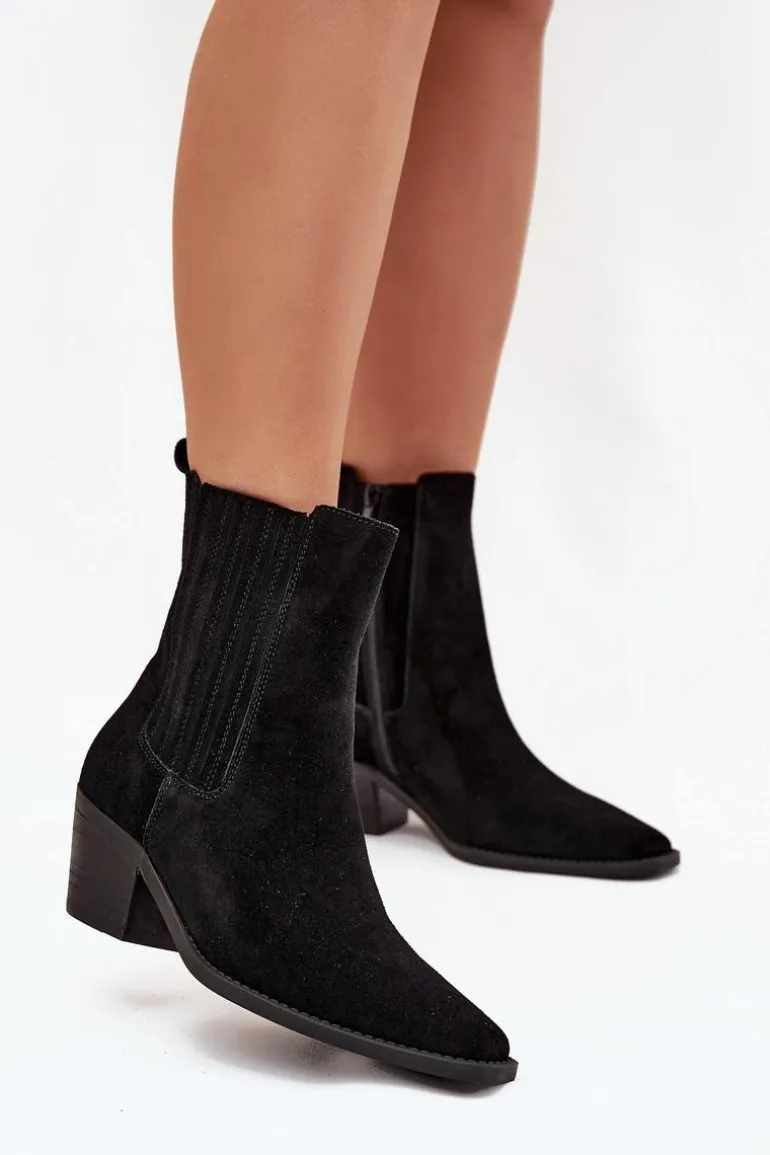 Zamszowe botki damskie na słupku ocieplane czarne Arelia