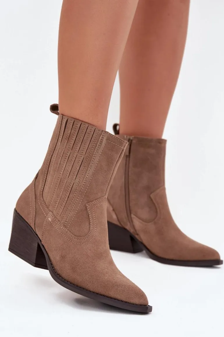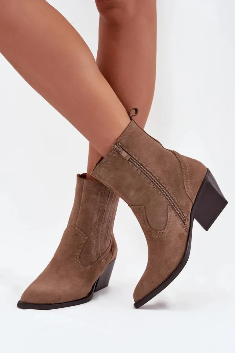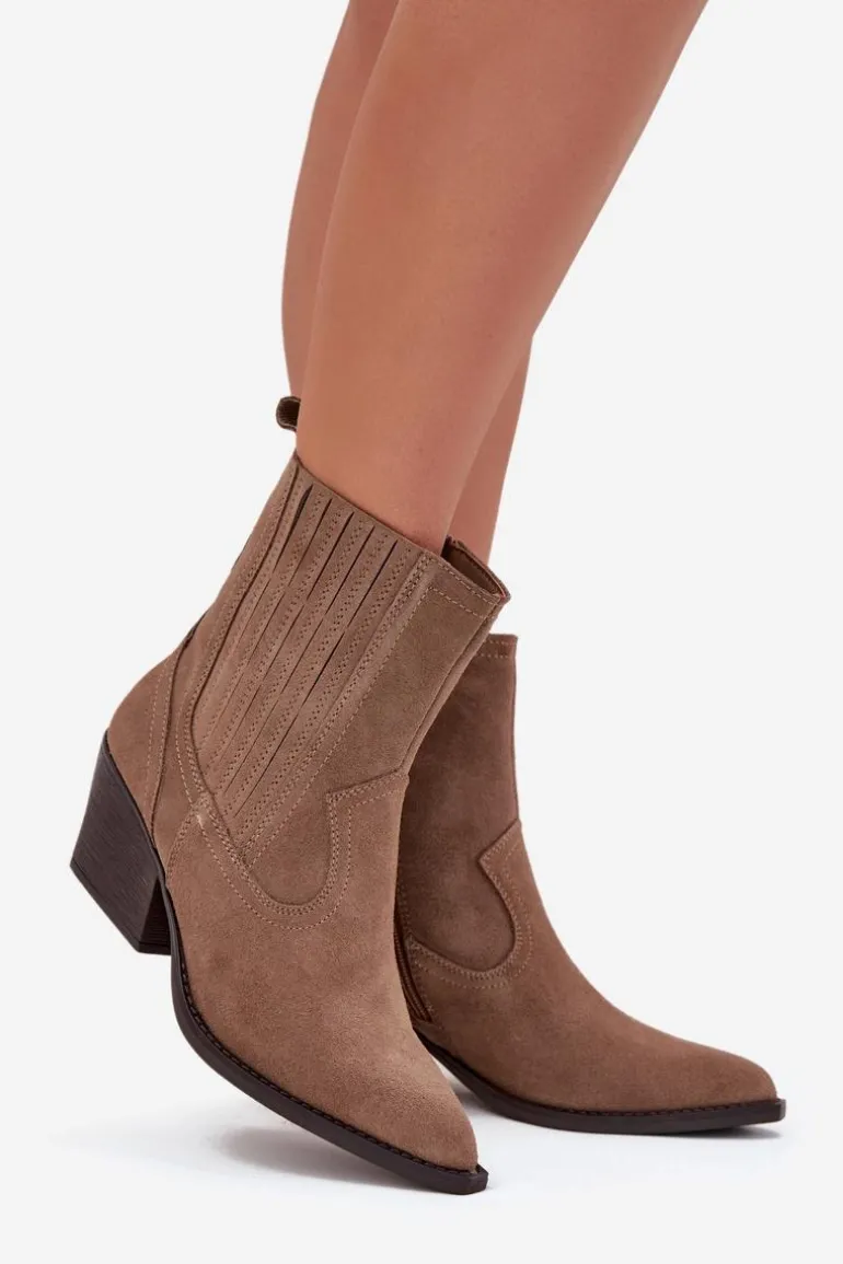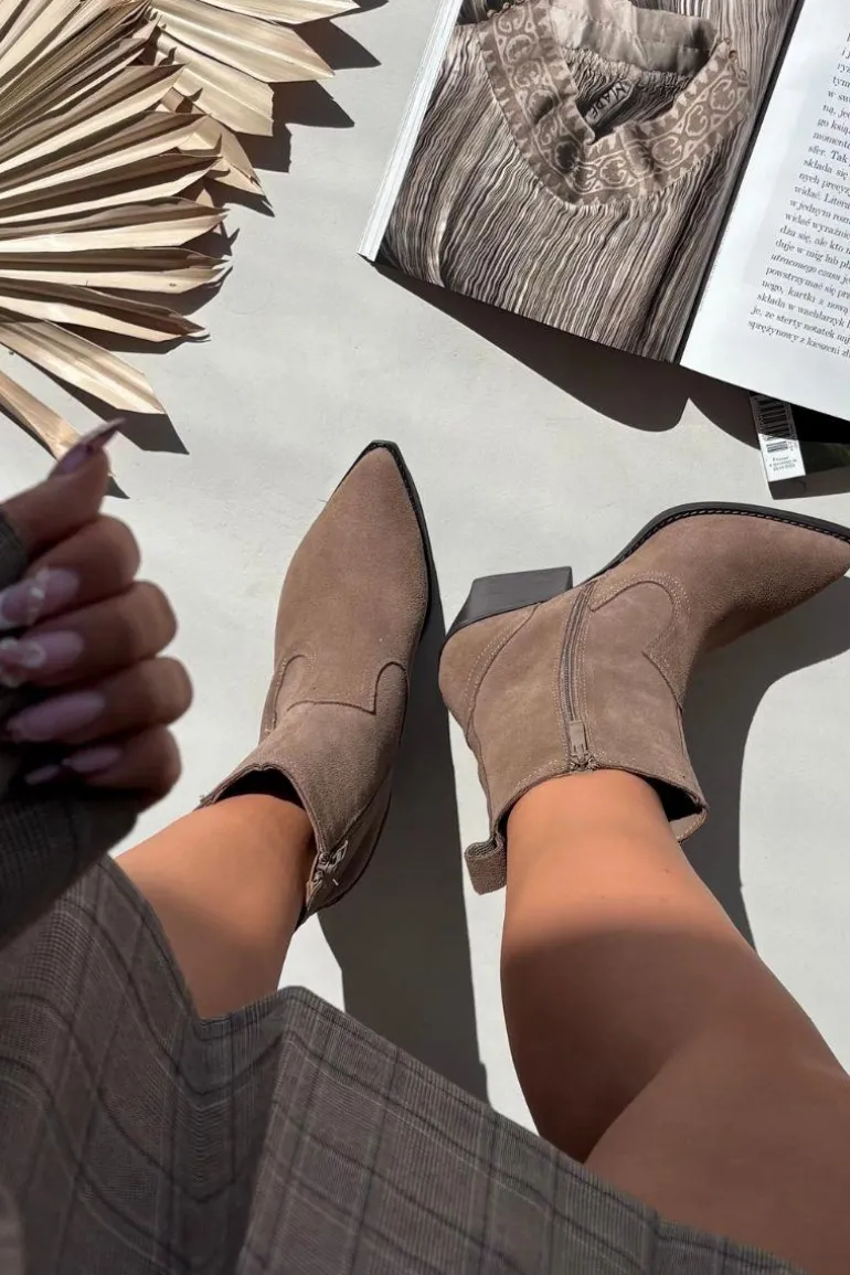 Botki kowbojki damskie z naturalnego zamszu to wyjątkowa propozycja, która łączy styl i komfort. Szpiczaste noski nadają im charakterystycznego wyglądu, a ocieplenie kocem obuwniczym zapewnia ciepło w chłodniejsze dni. Zamek błyskawiczny umożliwia wygodne zakładanie, a obcas słupek zapewnia stabilność i wygodę podczas chodzenia. Idealne do codziennych stylizacji, te botki dodadzą wyjątkowego akcentu każdemu lookowi. Przy wyborze rozmiaru prosimy sugerować się tabelą rozmiarów.