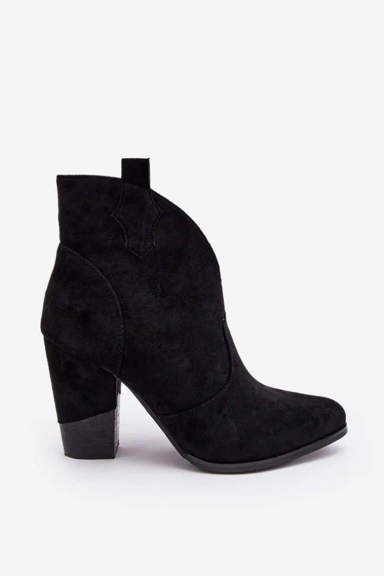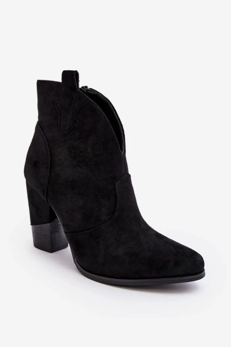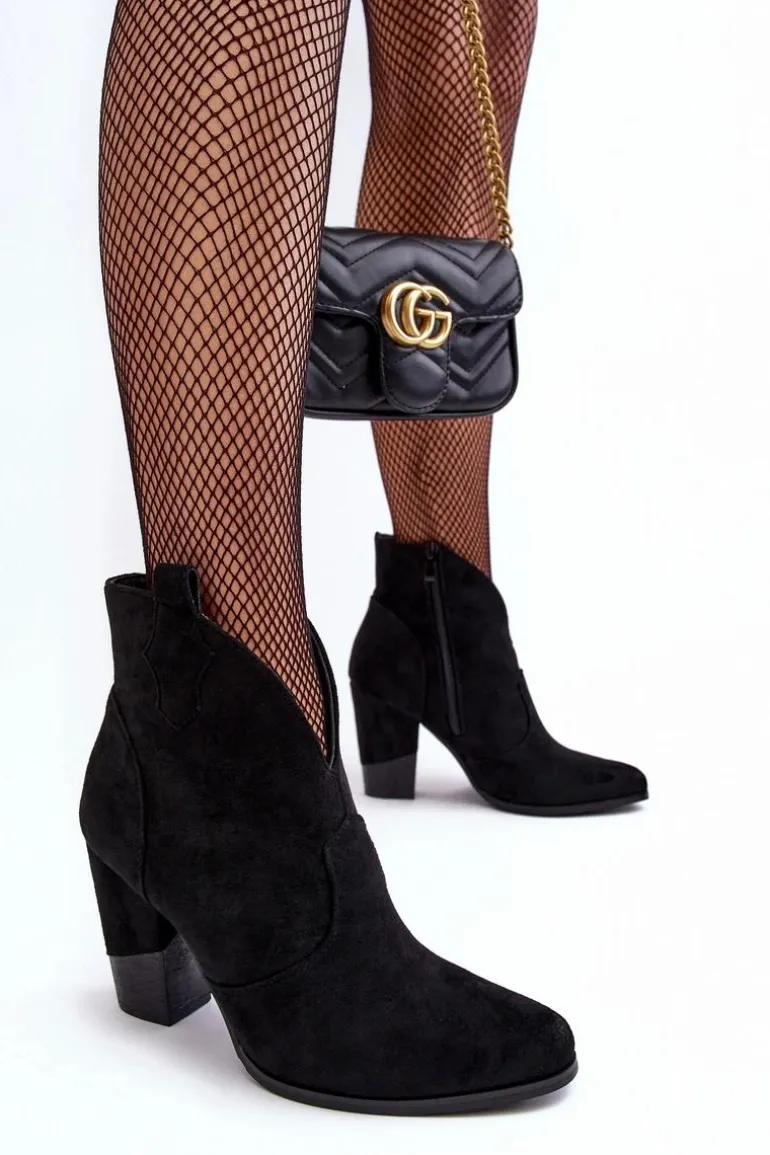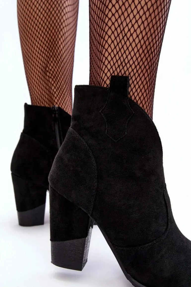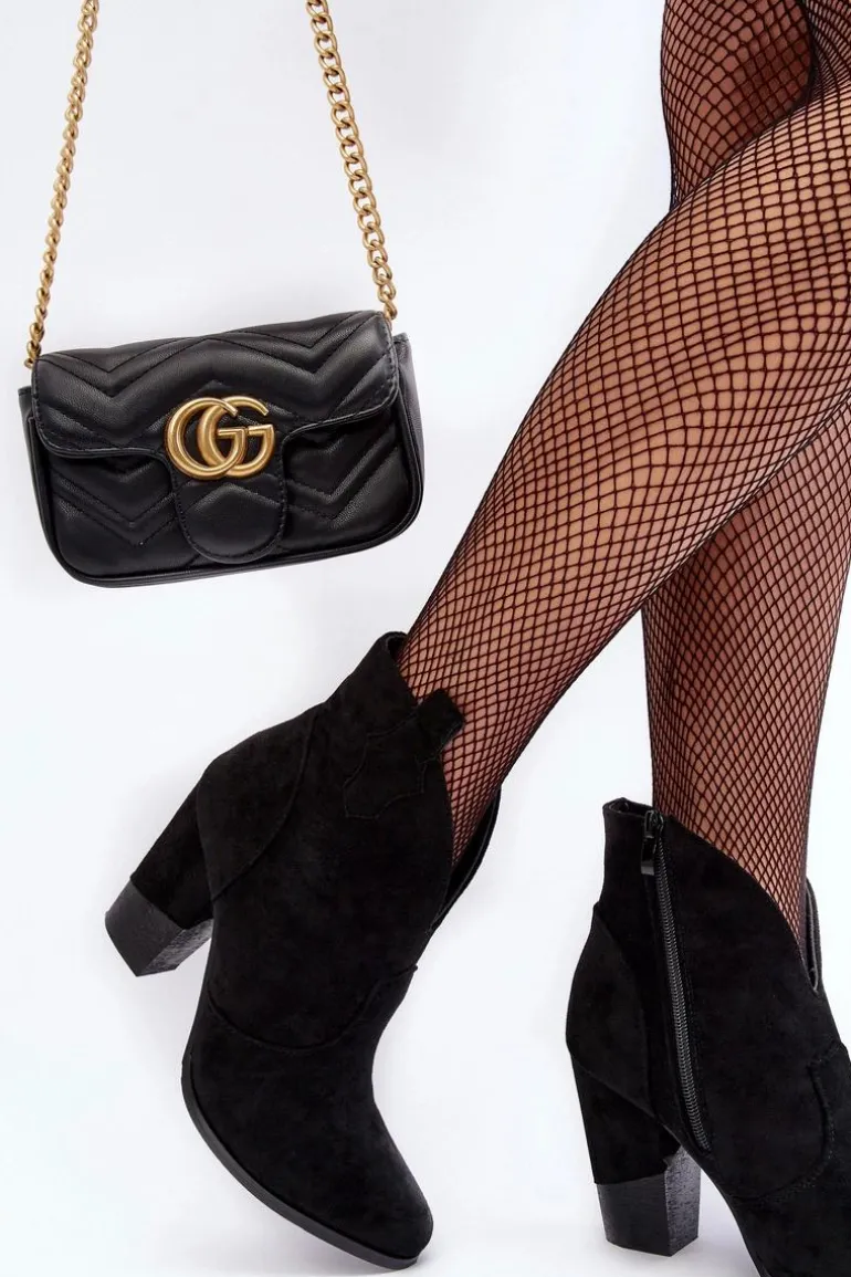 Botki w stylu kowbojek zostały wykonane z eko zamszu. Osadzone na obcasie w postaci słupka. Zapinane na suwak po wewnętrznej stronie. Noski w szpic optycznie wysmuklą nogi. Środek ocieplony kocem obuwniczy. Model ten będzie idealnym dopełnieniem jesienno-zimowych stylizacji! Przy wyborze rozmiaru prosimy sugerować się tabelą rozmiarów.