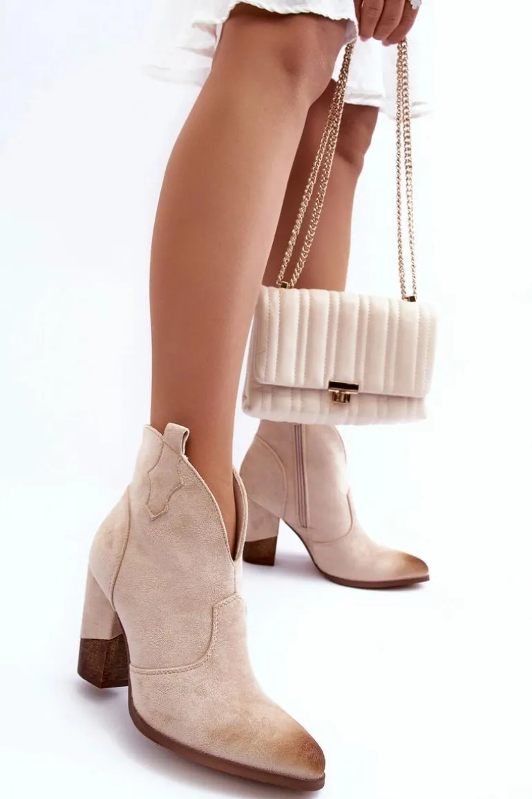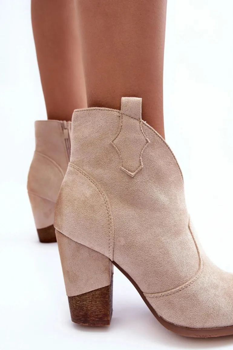 Botki w stylu kowbojek zostały wykonane z eko zamszu. Osadzone na obcasie w postaci słupka. Zapinane na suwak po wewnętrznej stronie. Noski w szpic optycznie wysmuklą nogi. Środek ocieplony kocem obuwniczy. Model ten będzie idealnym dopełnieniem jesienno-zimowych stylizacji! Przy wyborze rozmiaru prosimy sugerować się tabelą rozmiarów.