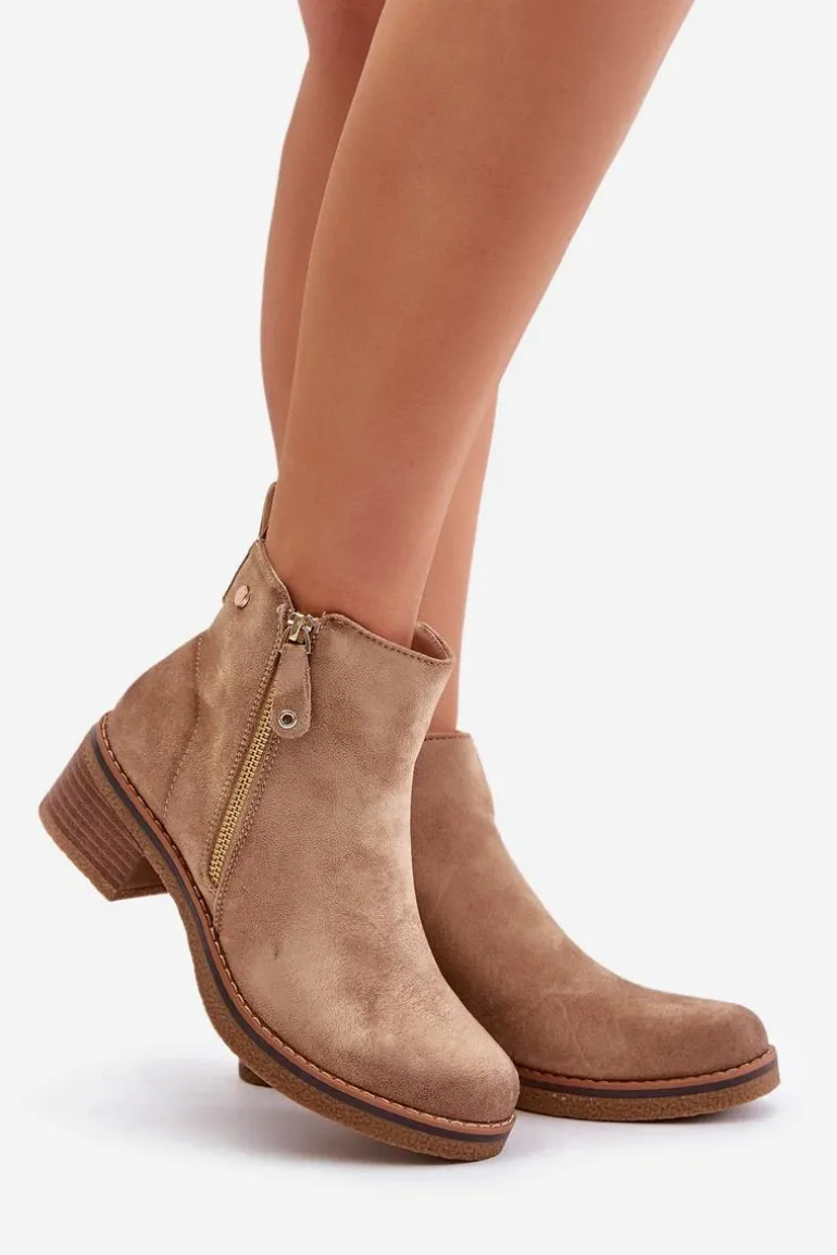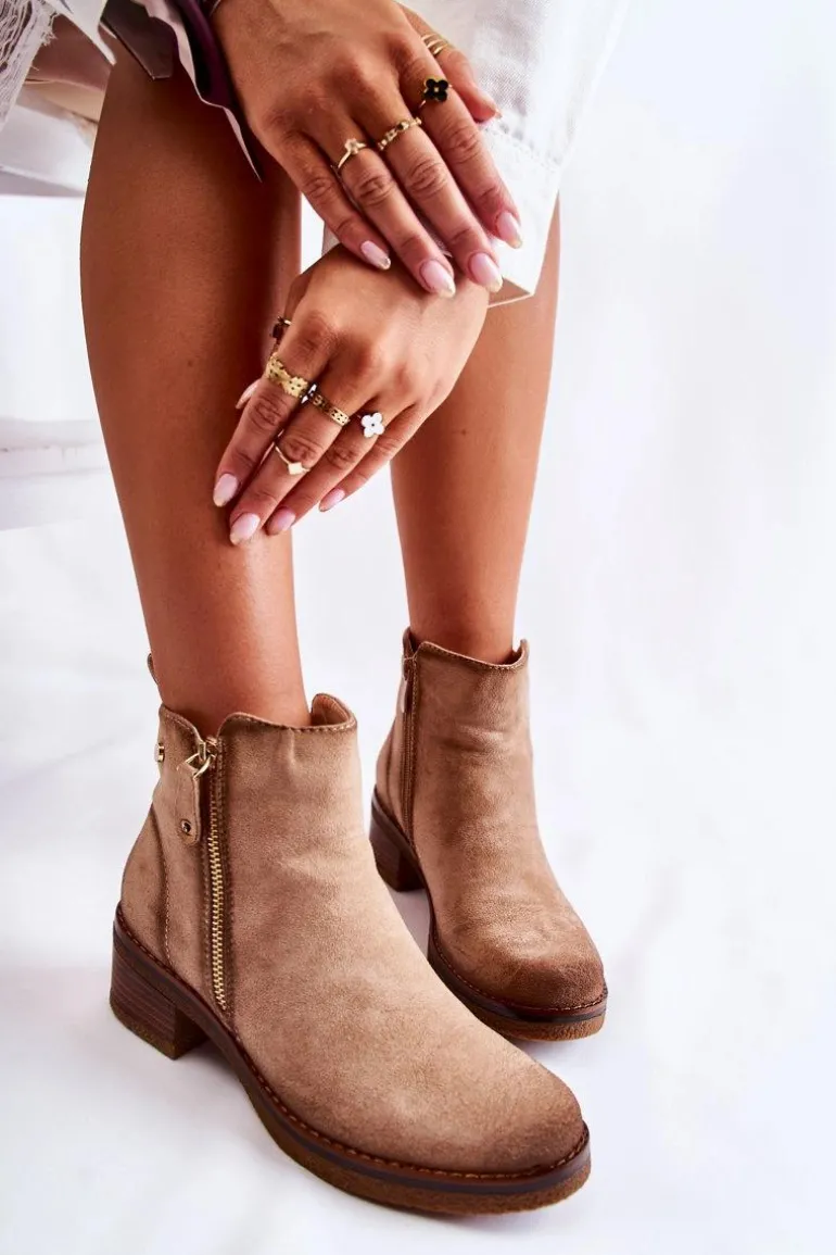 Zamszowe Botki Na Niskim Słupku Beżowe Laurisa