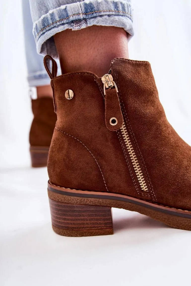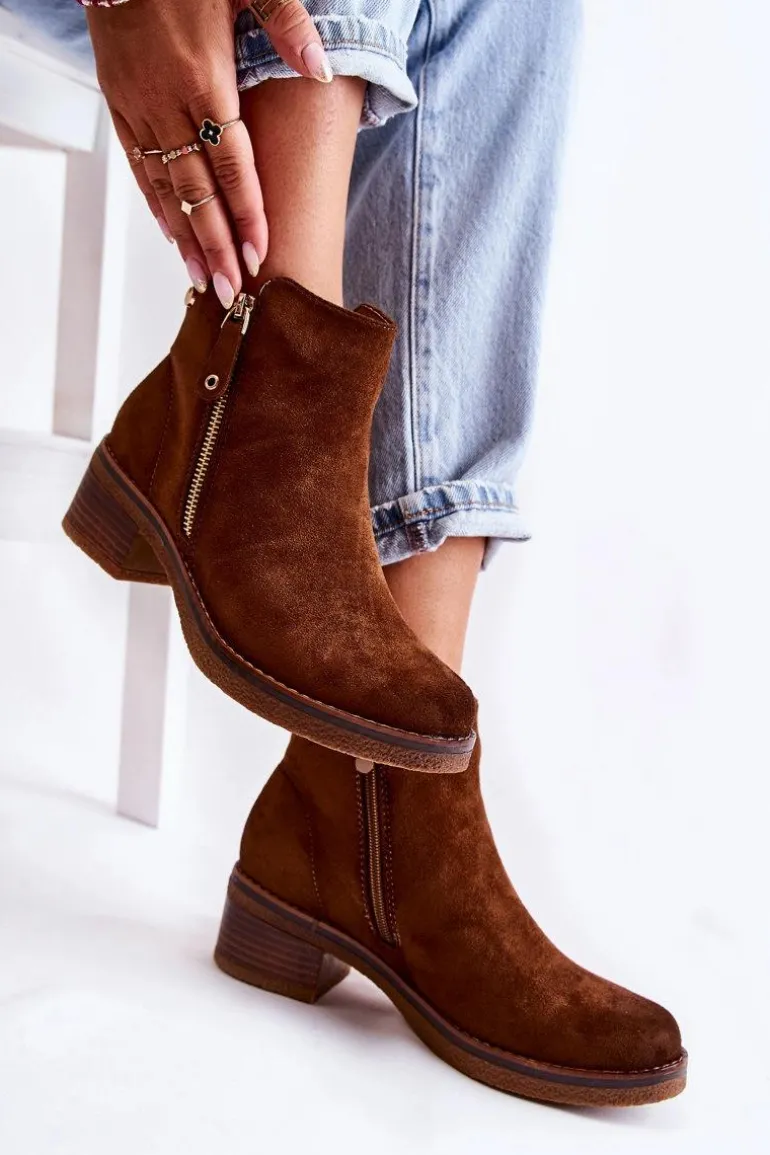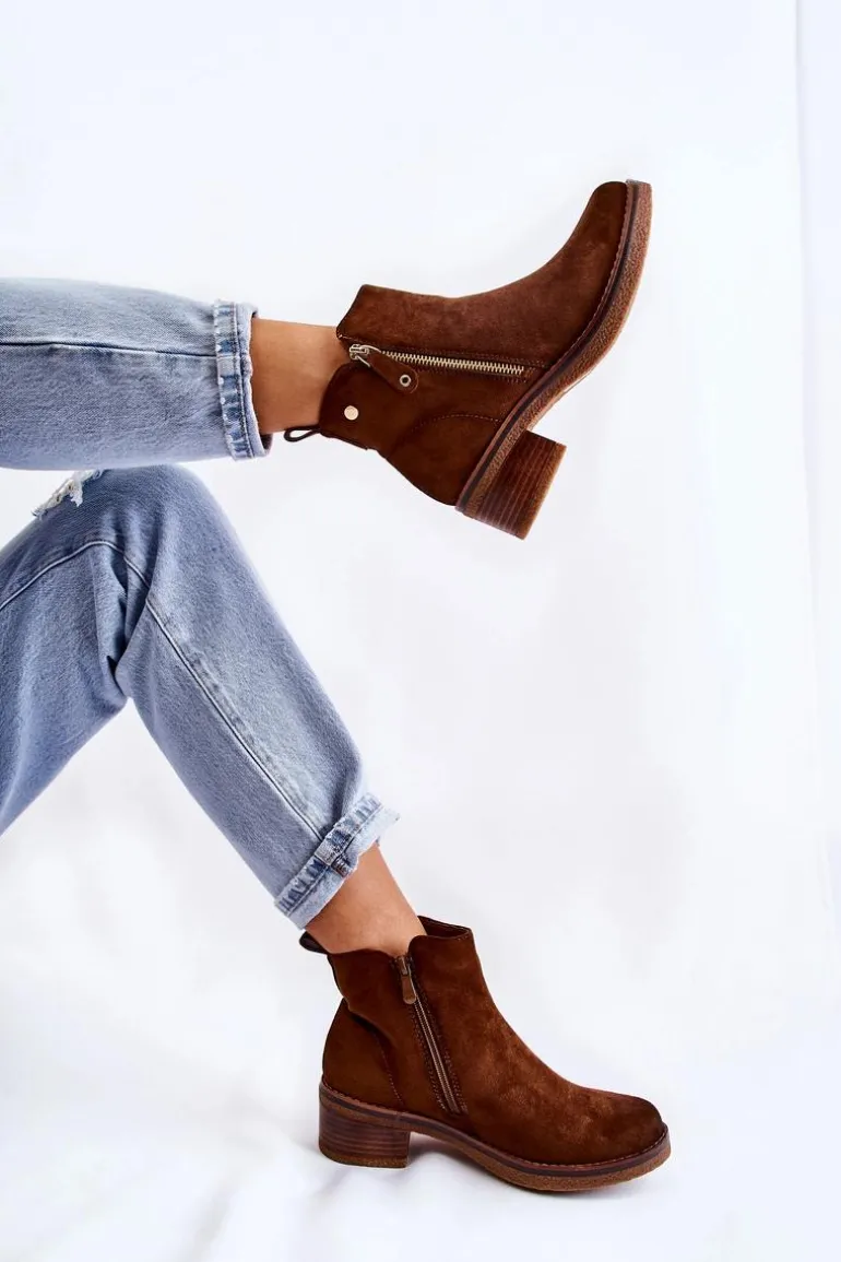 Zamszowe Botki Na Niskim Słupku Brązowe Laurisa