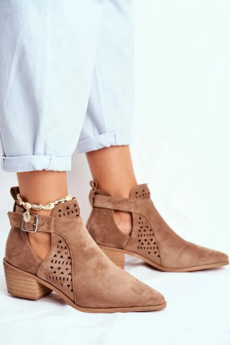 Piękne botki z noskiem w szpic wykonane z eko zamszu. Przy wyborze rozmiaru prosimy sugerować się tabelą rozmiarów.