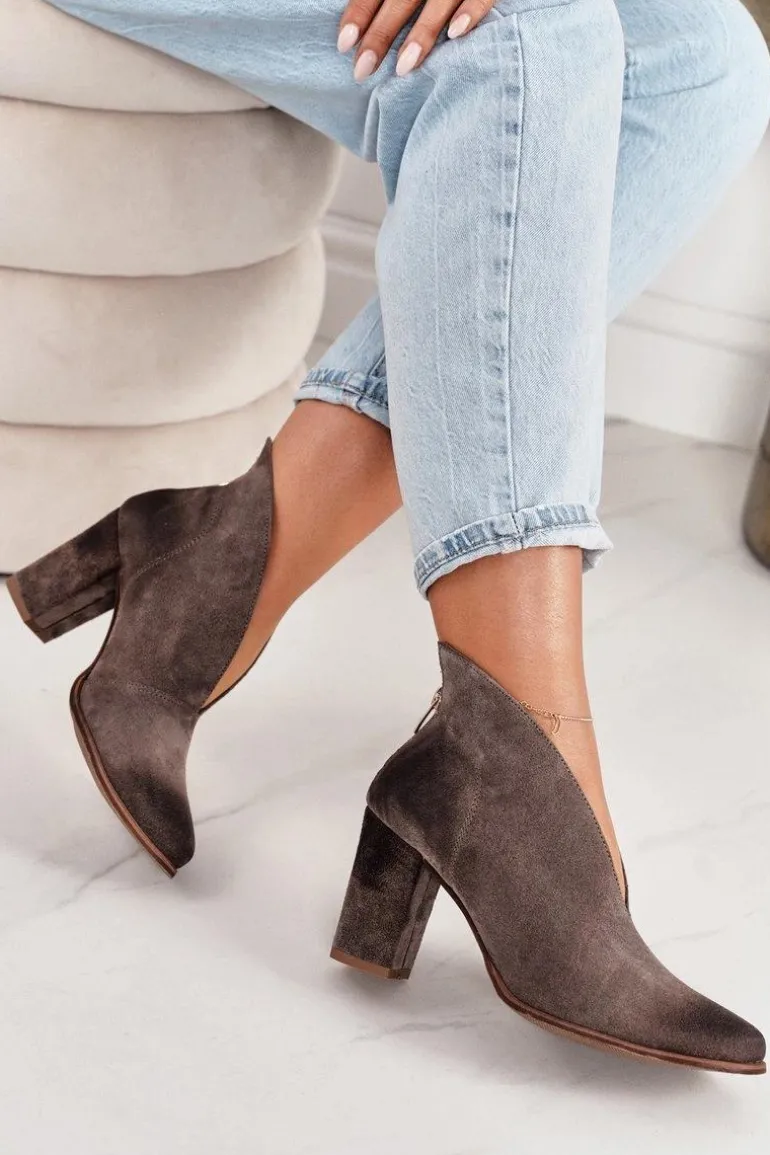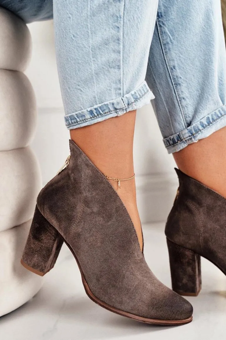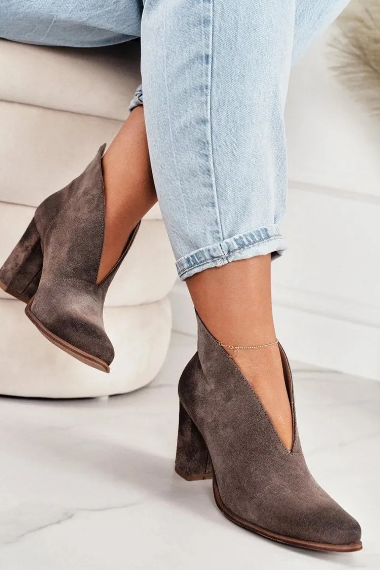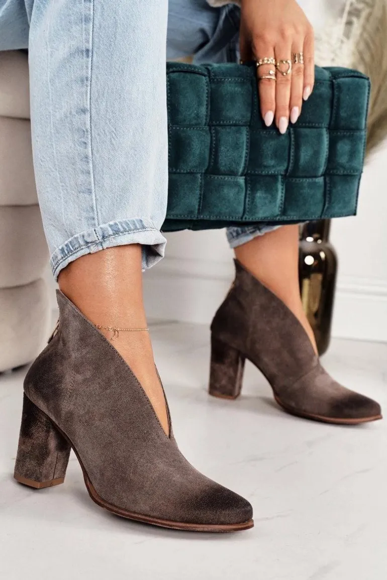 Zamszowe Botki Na Słupku Z Wycięciem Exquisite 1231 Cappuccino