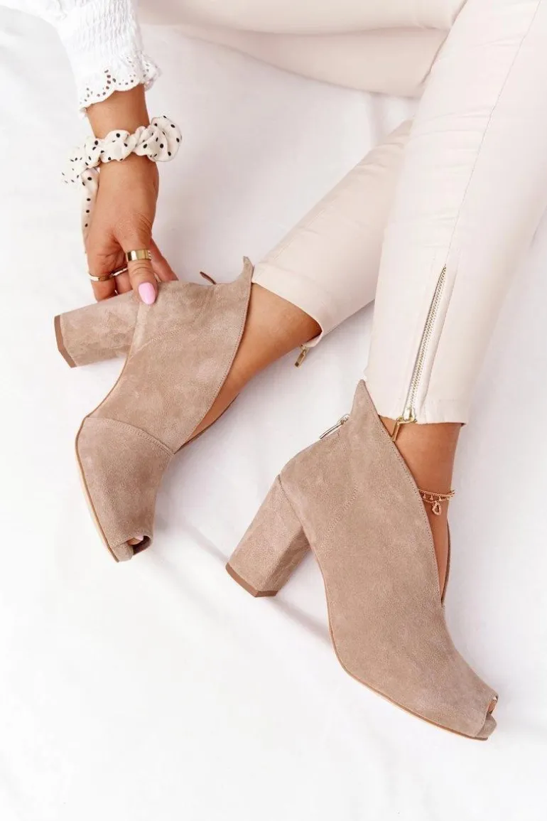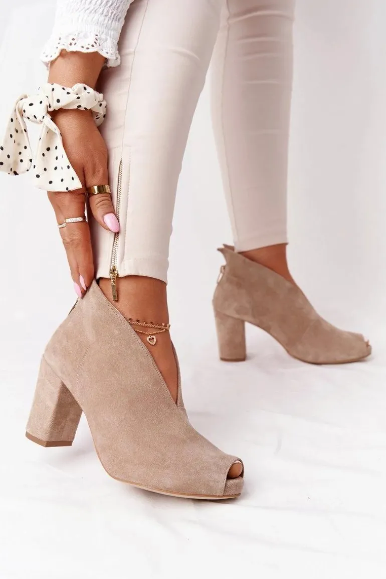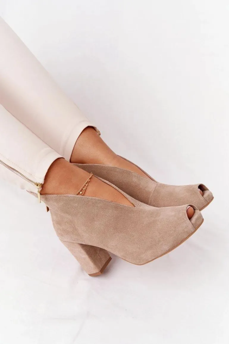 Zamszowe Botki Na Słupku Z Wycięciem Exquisite 1243 Beżowe