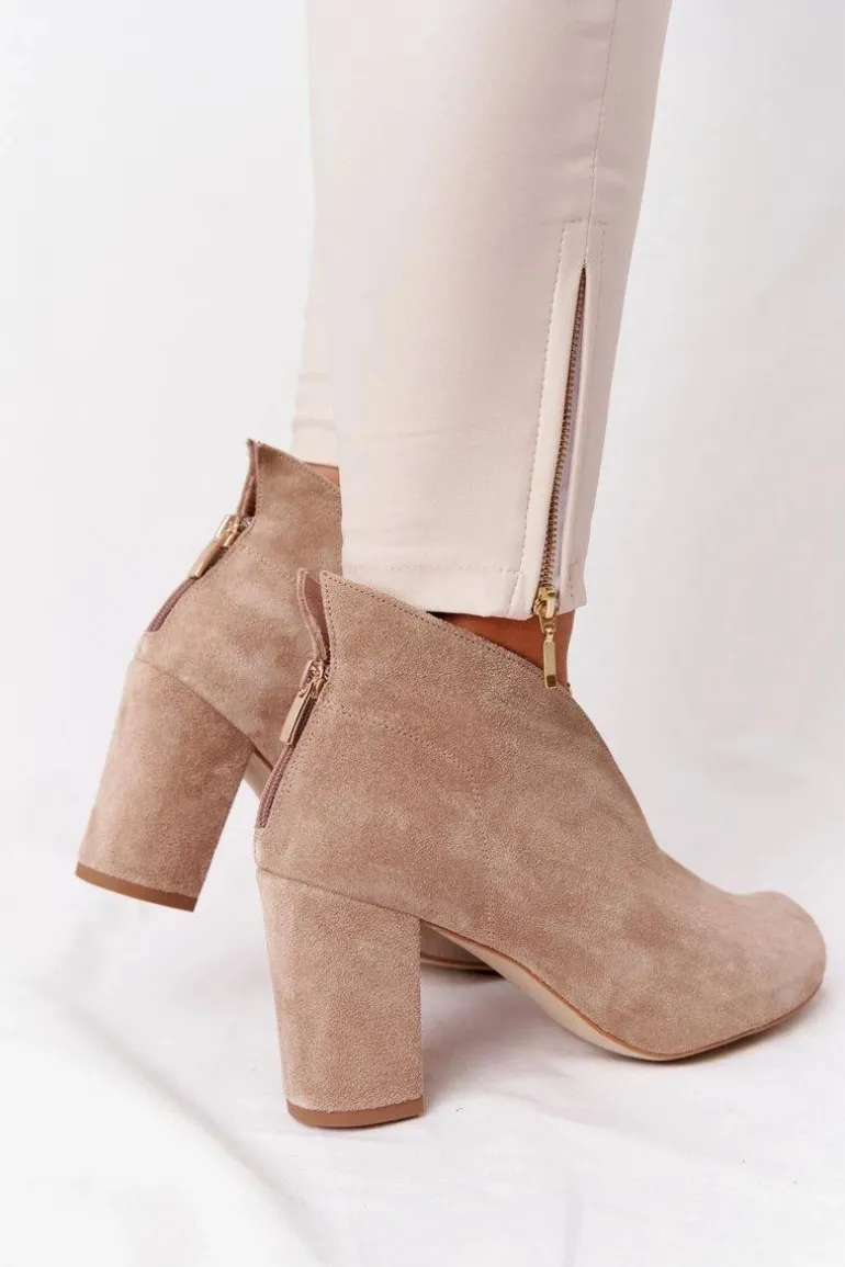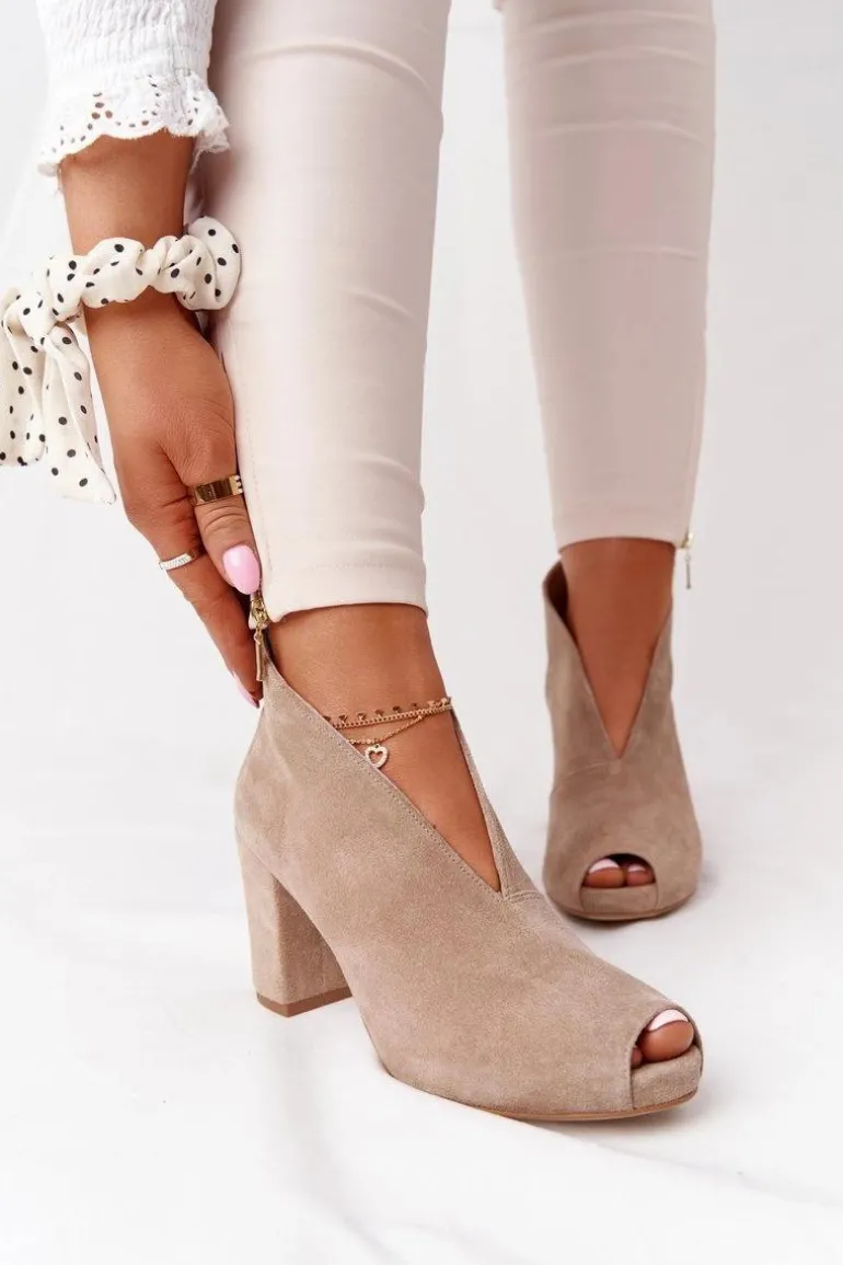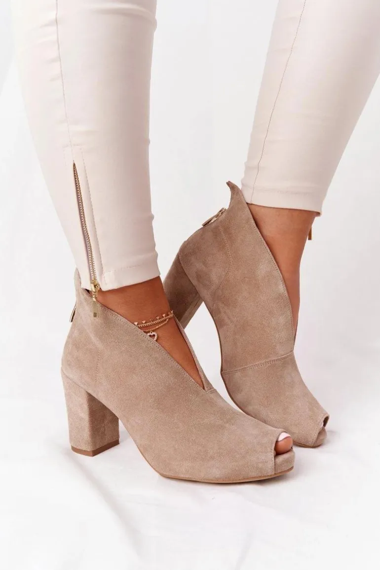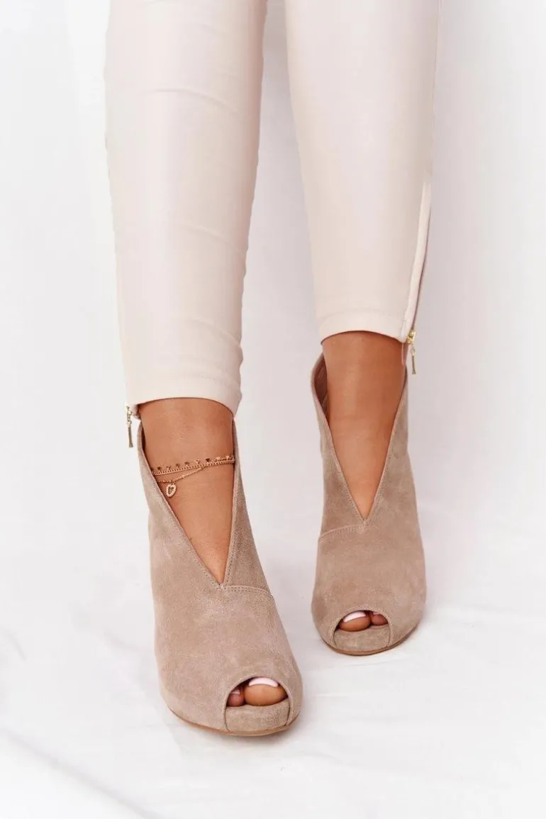Zamszowe Botki Na Słupku Z Wycięciem Exquisite 1243 Beżowe