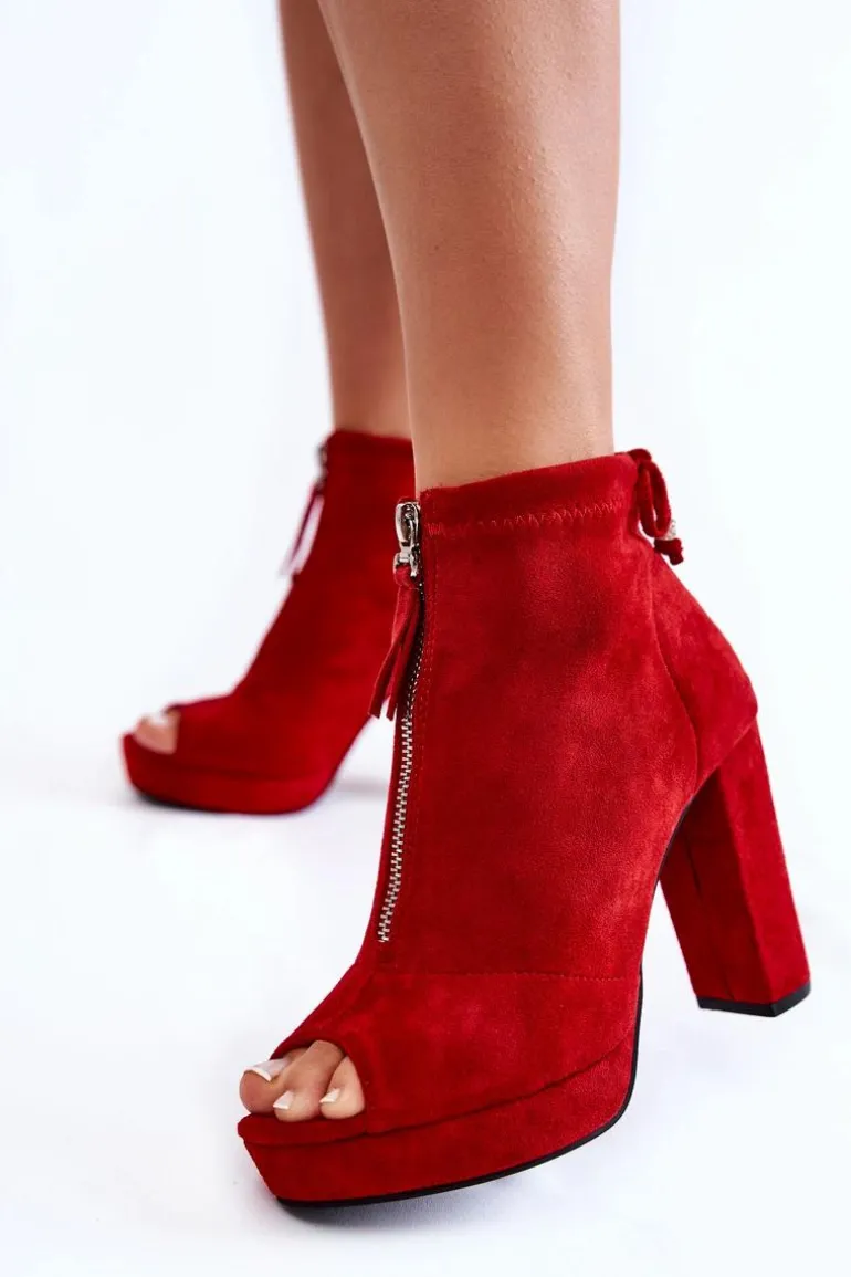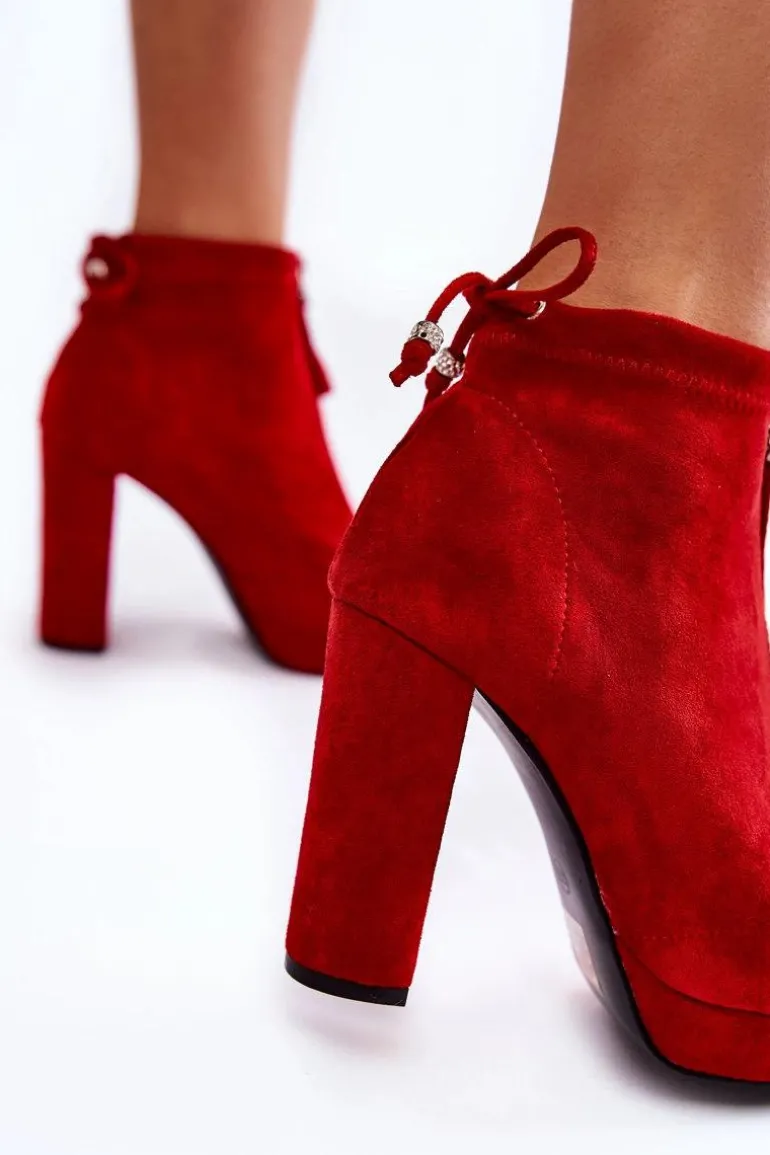Botki zostały wykonane z zamszowej eko skóry. Posiadają z przodu suwak ułatwiający zakładanie obuwia. Posiadają sztywny zapiętek. Szerokość u góry cholewki jest regulowana, dzięki sznureczkom z ozdobnymi koralikami. Przód obuwia bez noska. Stabilny obcas i niska platforma sprawiają, że te botki są niezwykle komfortowe w noszeniu. Przy wyborze rozmiaru prosimy kierować się tabelą rozmiarów