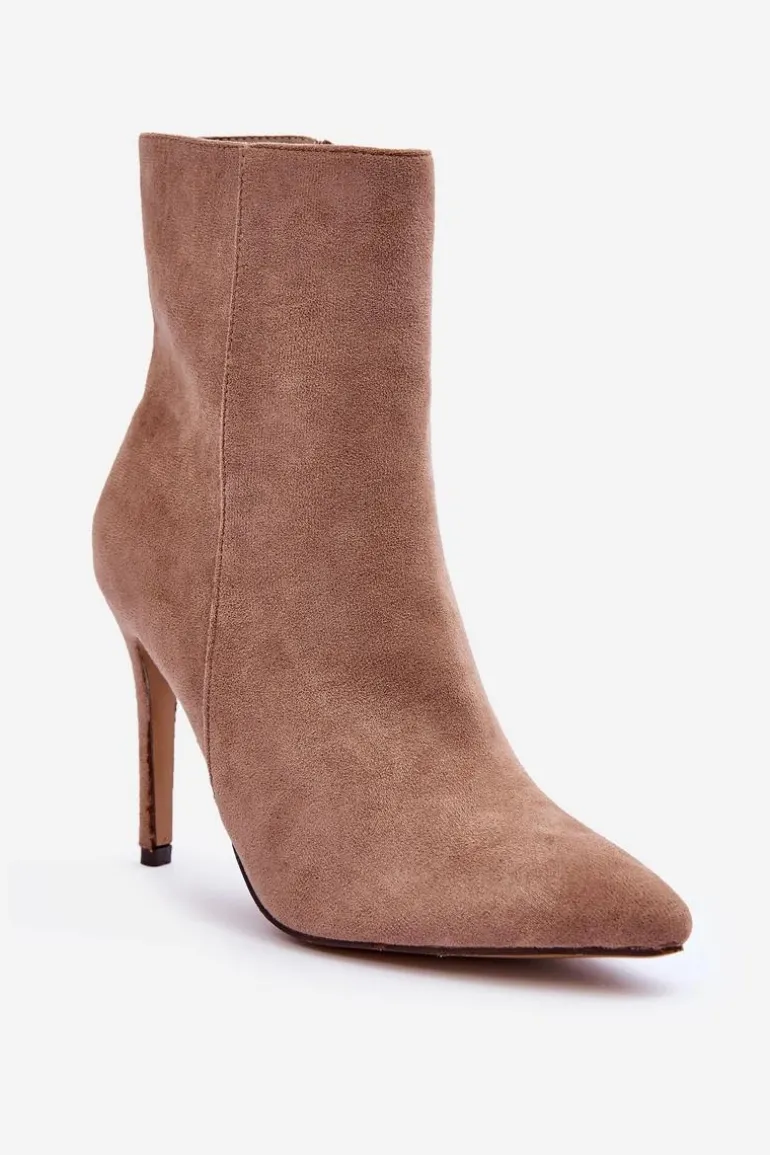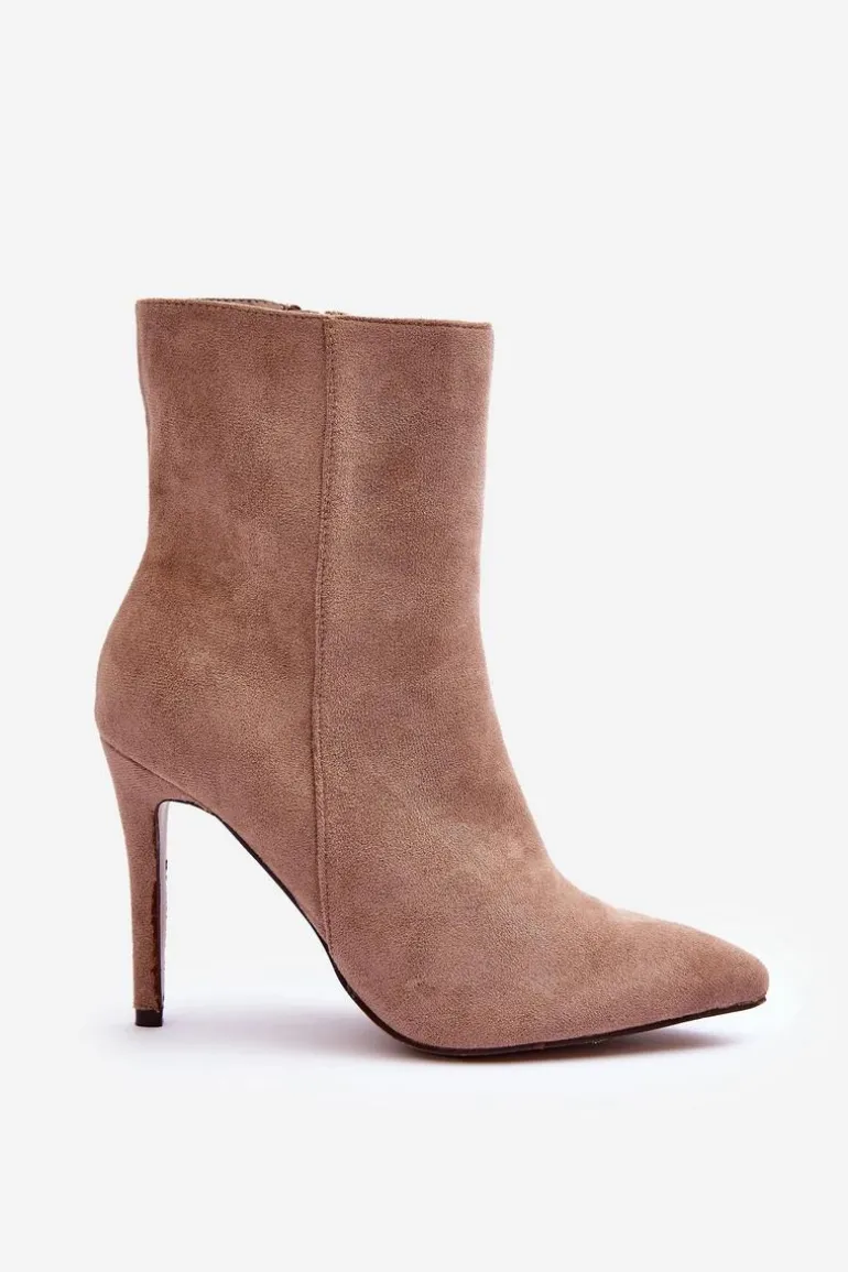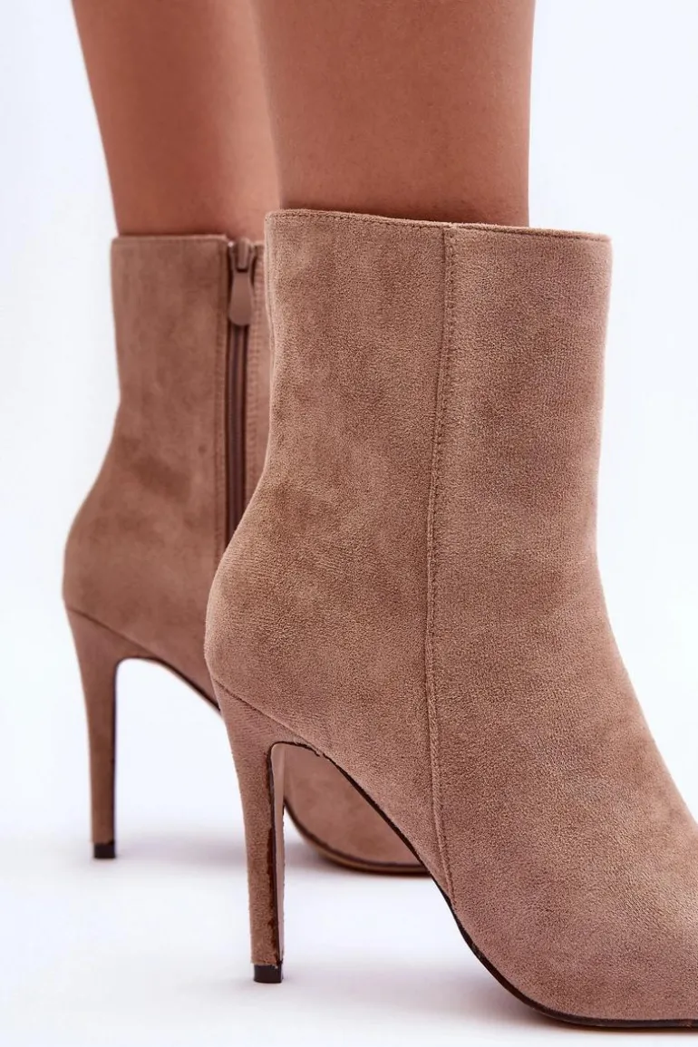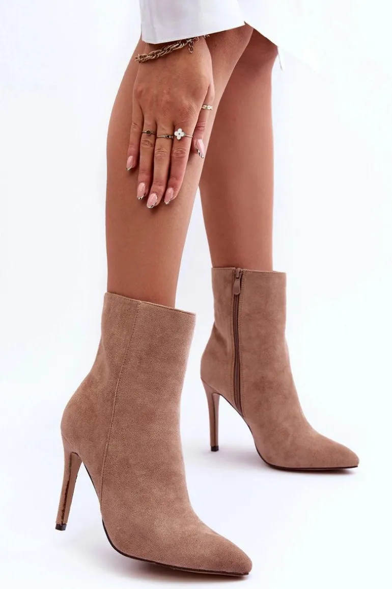 Zamszowe Botki Na Szpilce Beżowe Eberpia