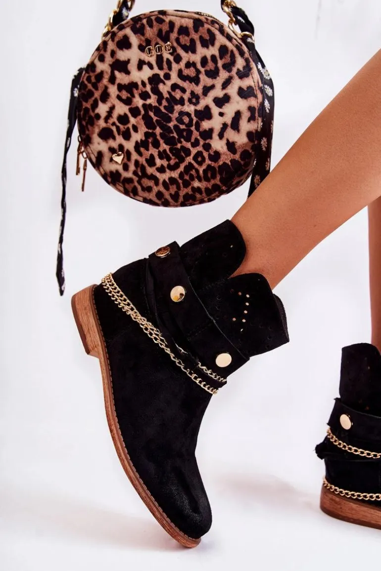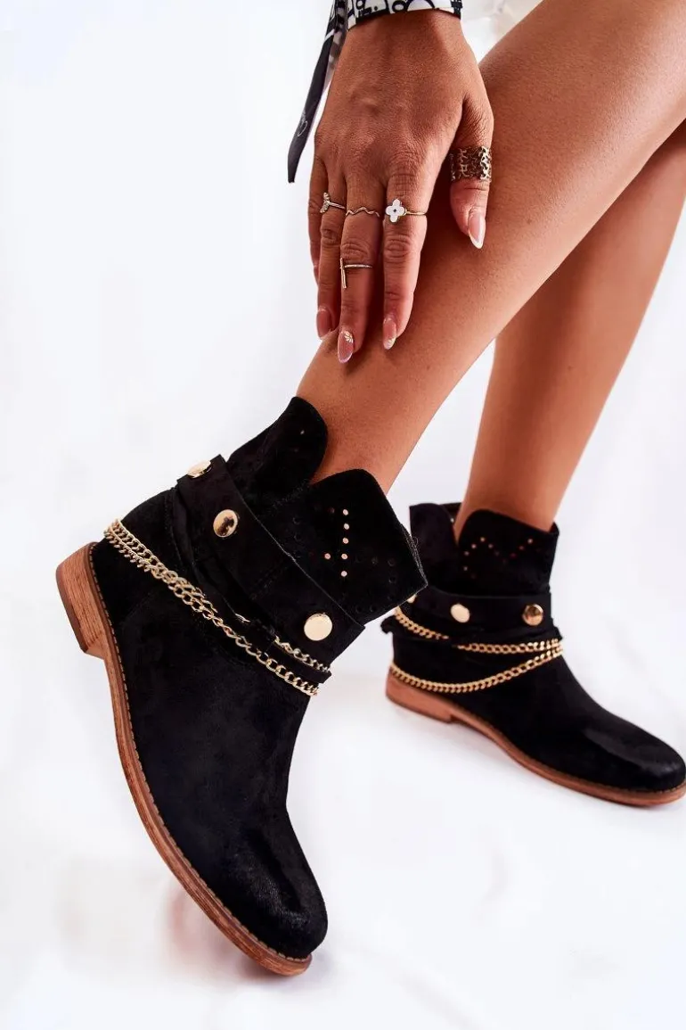 Zamszowe Botki Na Ukrytym Koturnie Czarne Verine