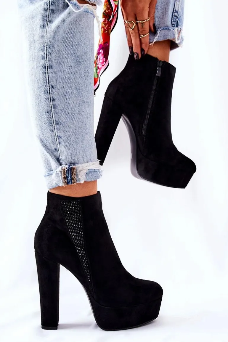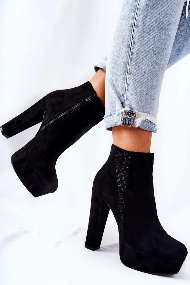 Zamszowe Botki Na Wysokim Obcasie Czarne Sarsea