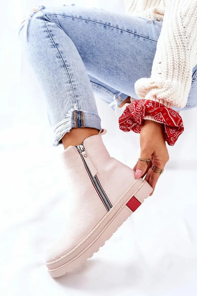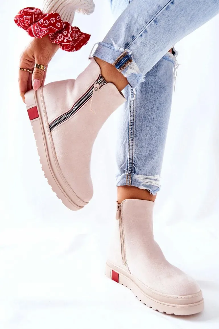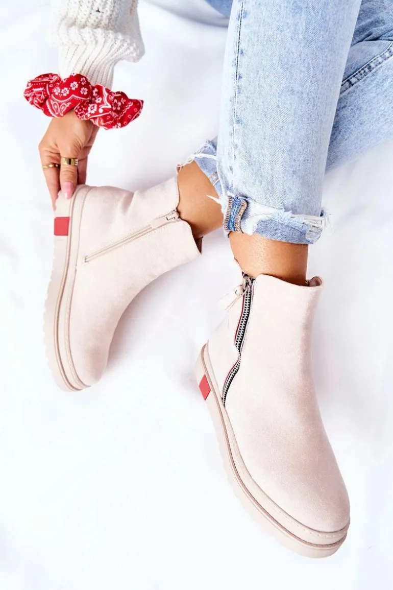 Sztyblety damskie wykonane z eko zamszu. Posiadają grubszą podeszwę, dzięki której są bardzo stabilne. Z zewnętrznej strony buta znajduje się ozdobny suwak. Natomiast z wewnętrznej suwak umożliwiający założenie obuwia. Koniecznie sprawdź pozostałe nasze modele! Przy wyborze rozmiaru prosimy sugerować się tabelą rozmiarów.