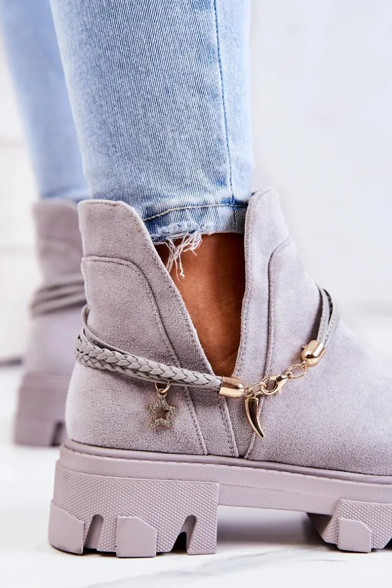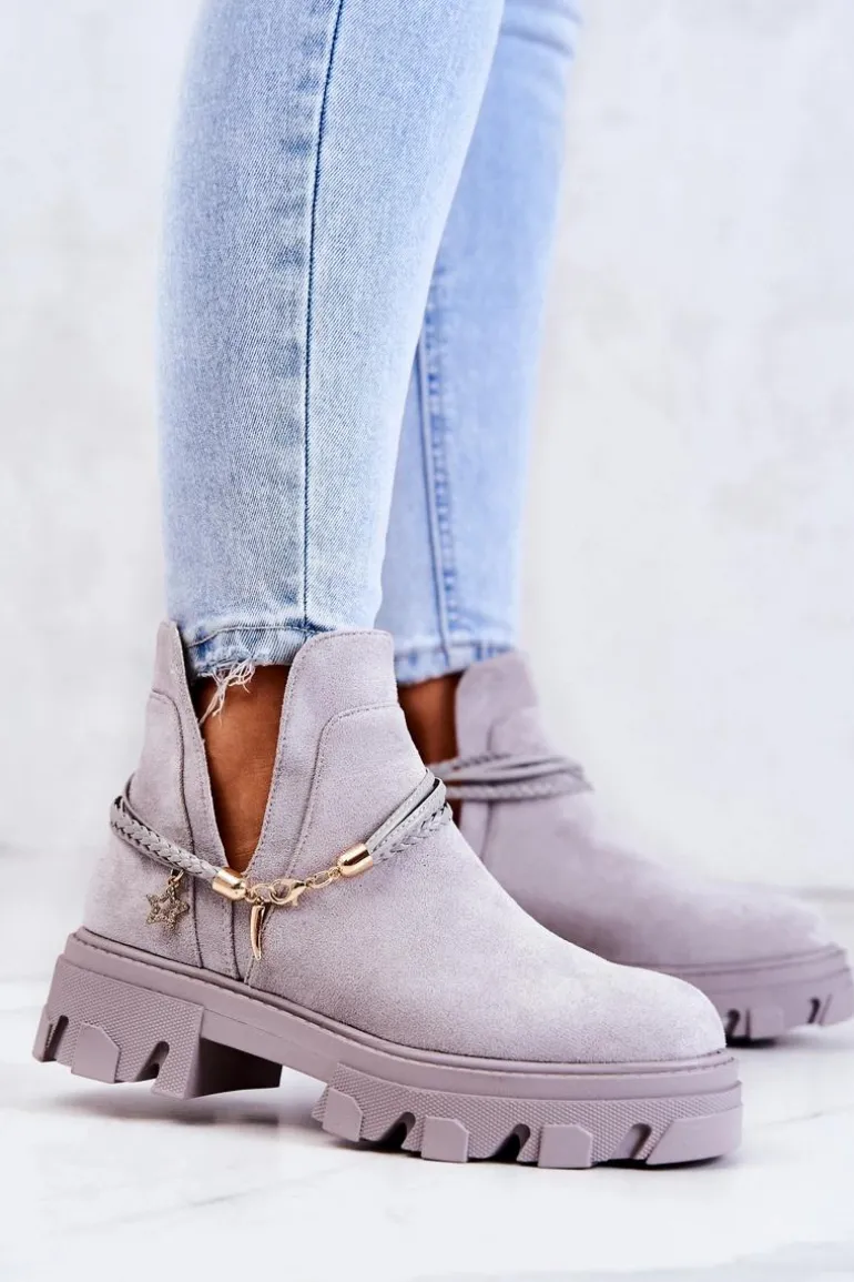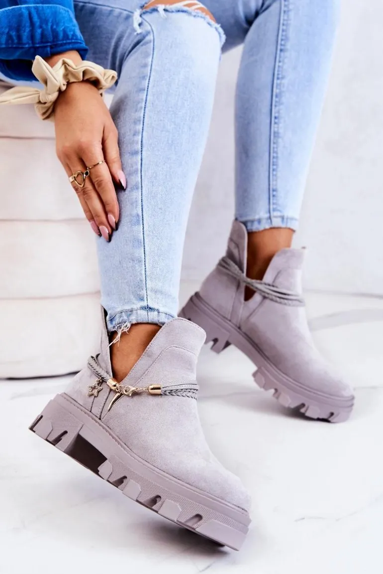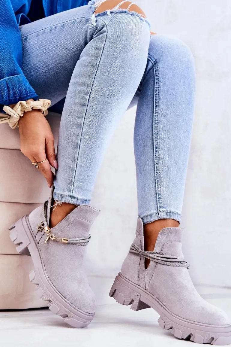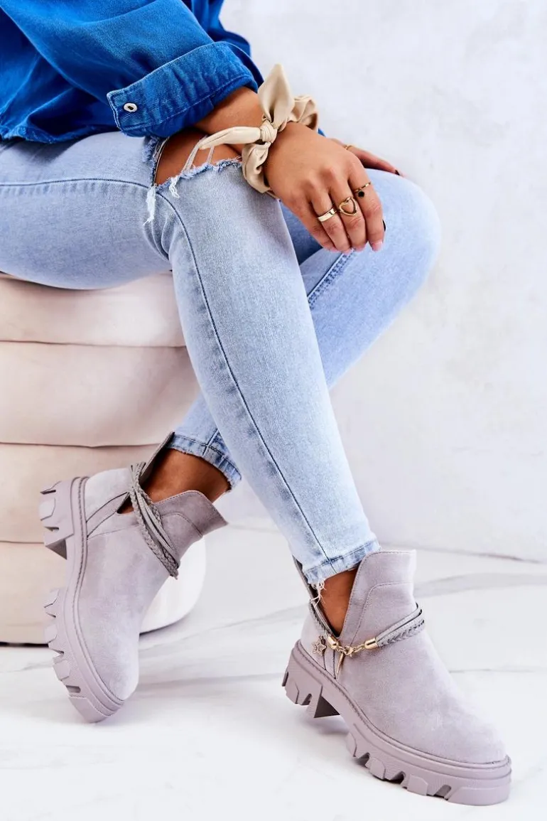 Zamszowe Botki Workery Z Paskami Szare Moriah