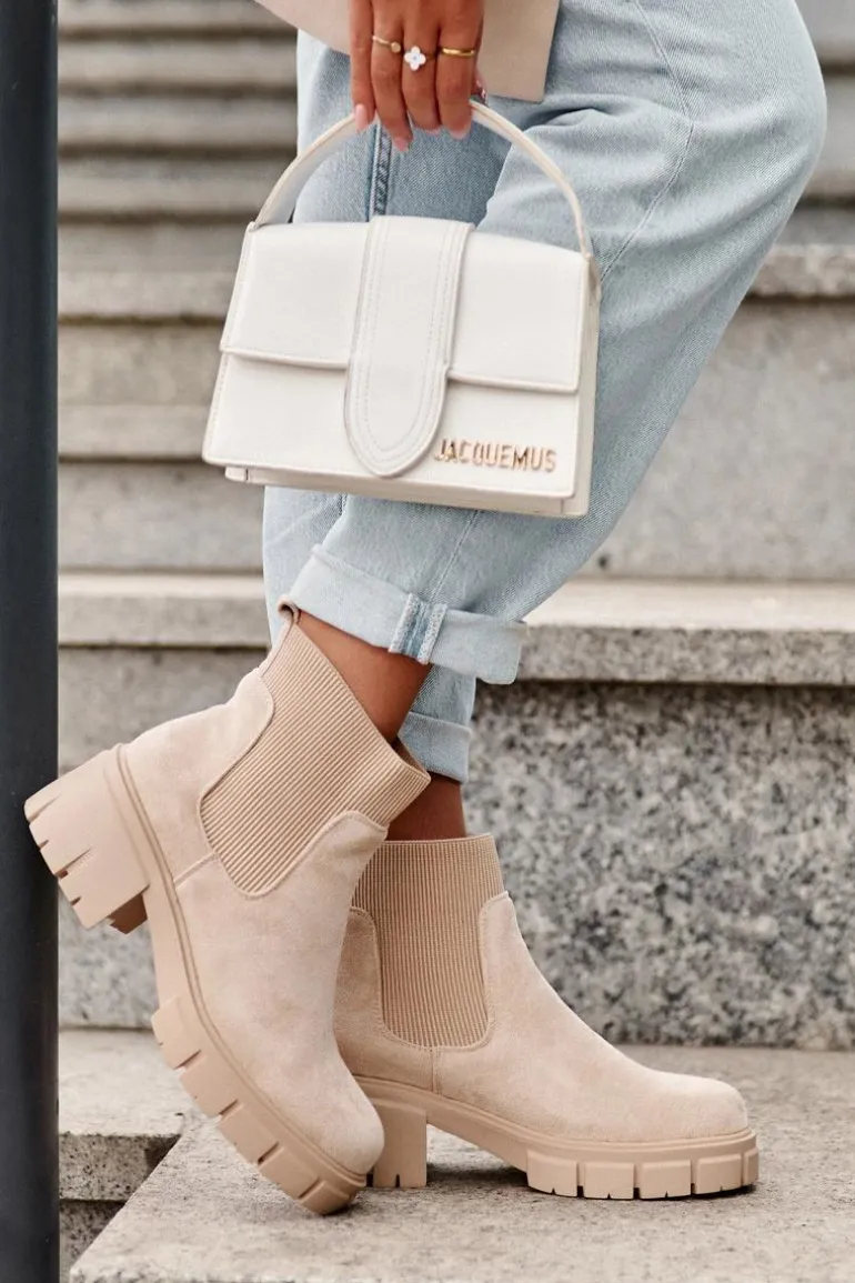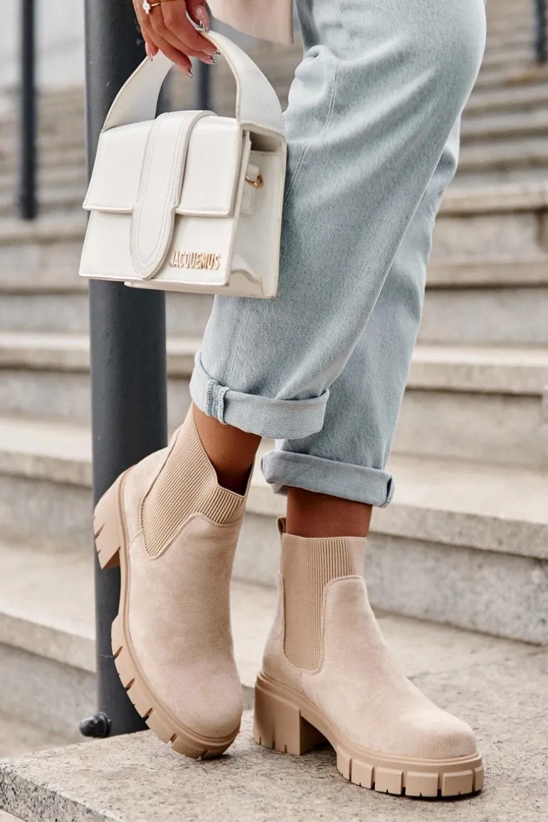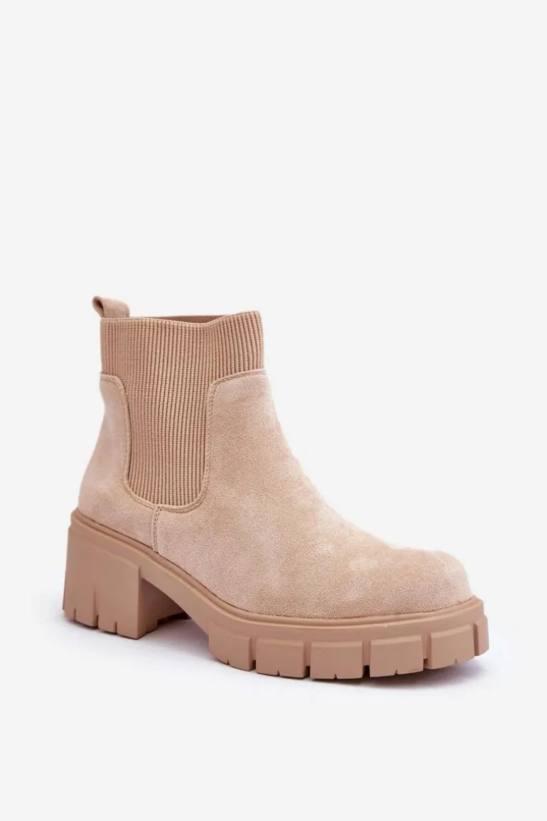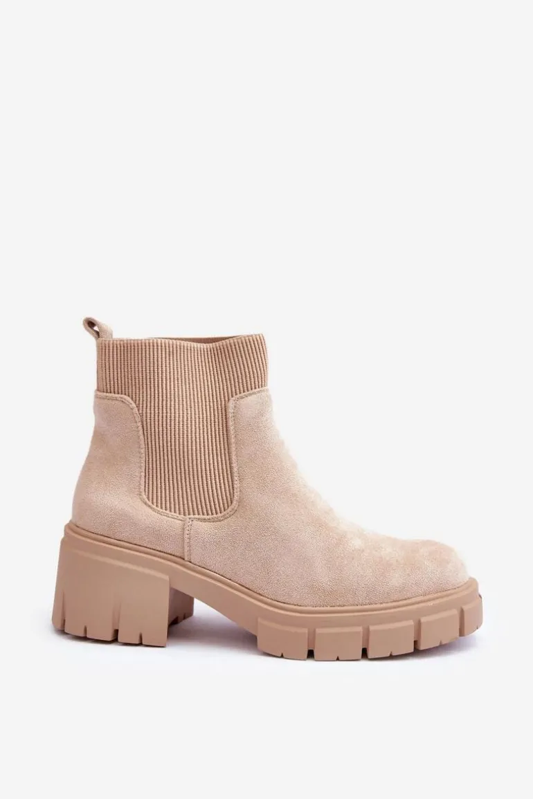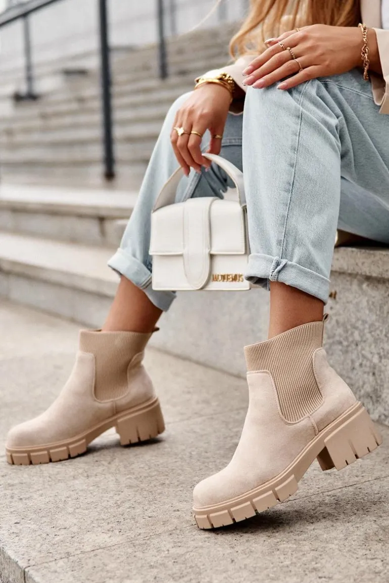 Zamszowe Botki Z Elastyczną Wstawką Beżowe Anyfer