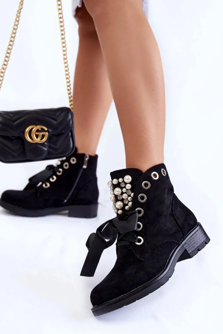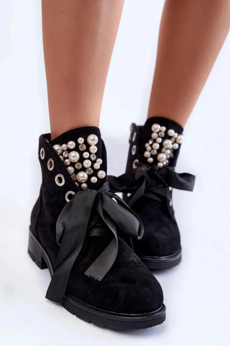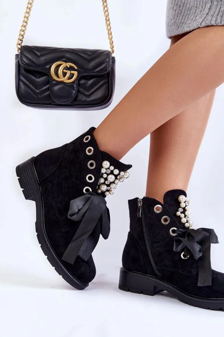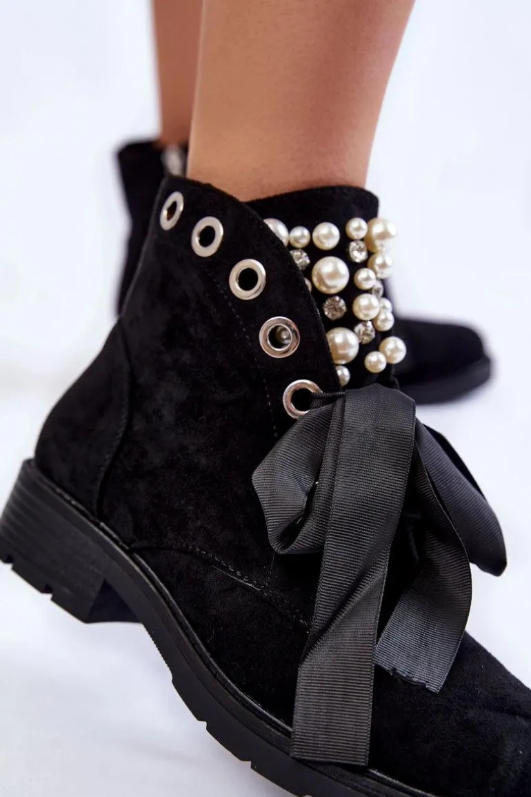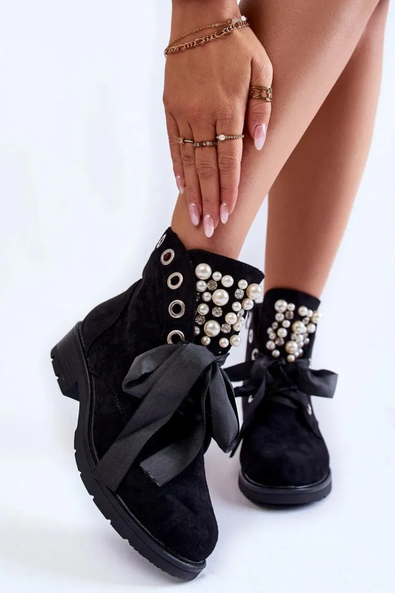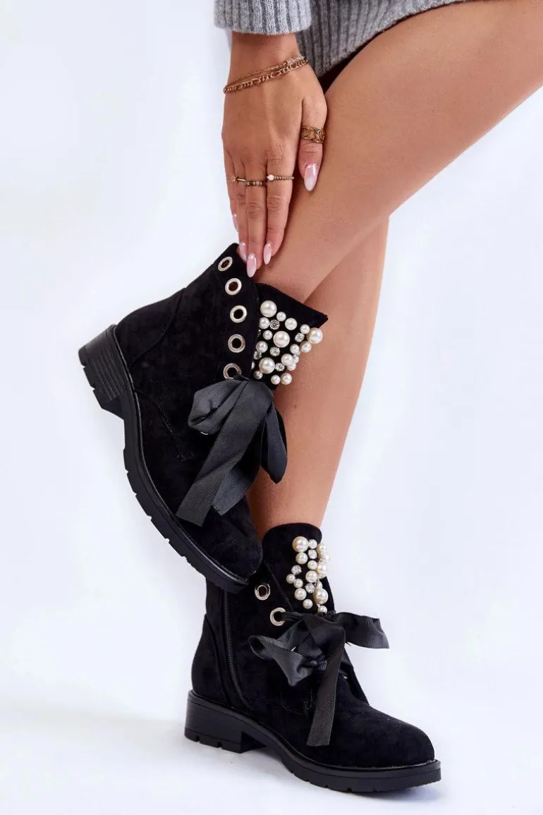 Wyjątkowe botki damskie wykonane z zamszowej skóry ekologicznej. Model wyróżnia się krojem cholewki oraz ozdobami. Przy wyborze rozmiaru prosimy sugerować się tabelą rozmiarów.