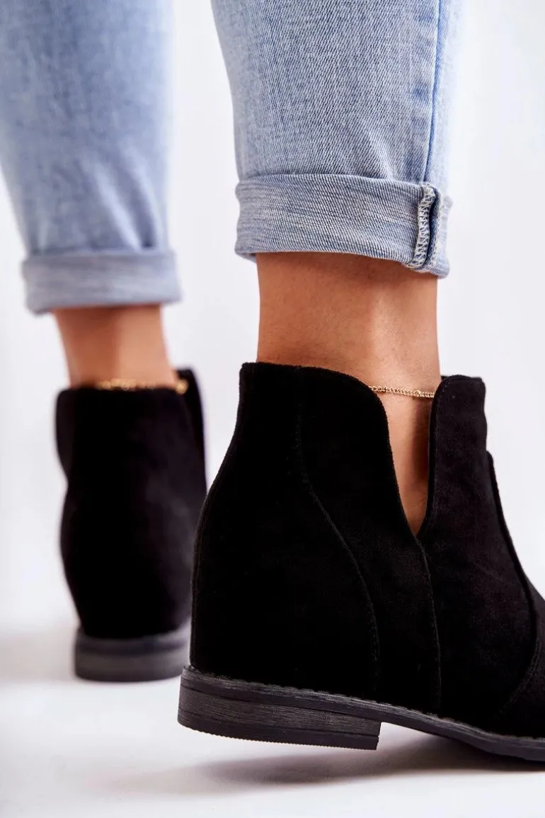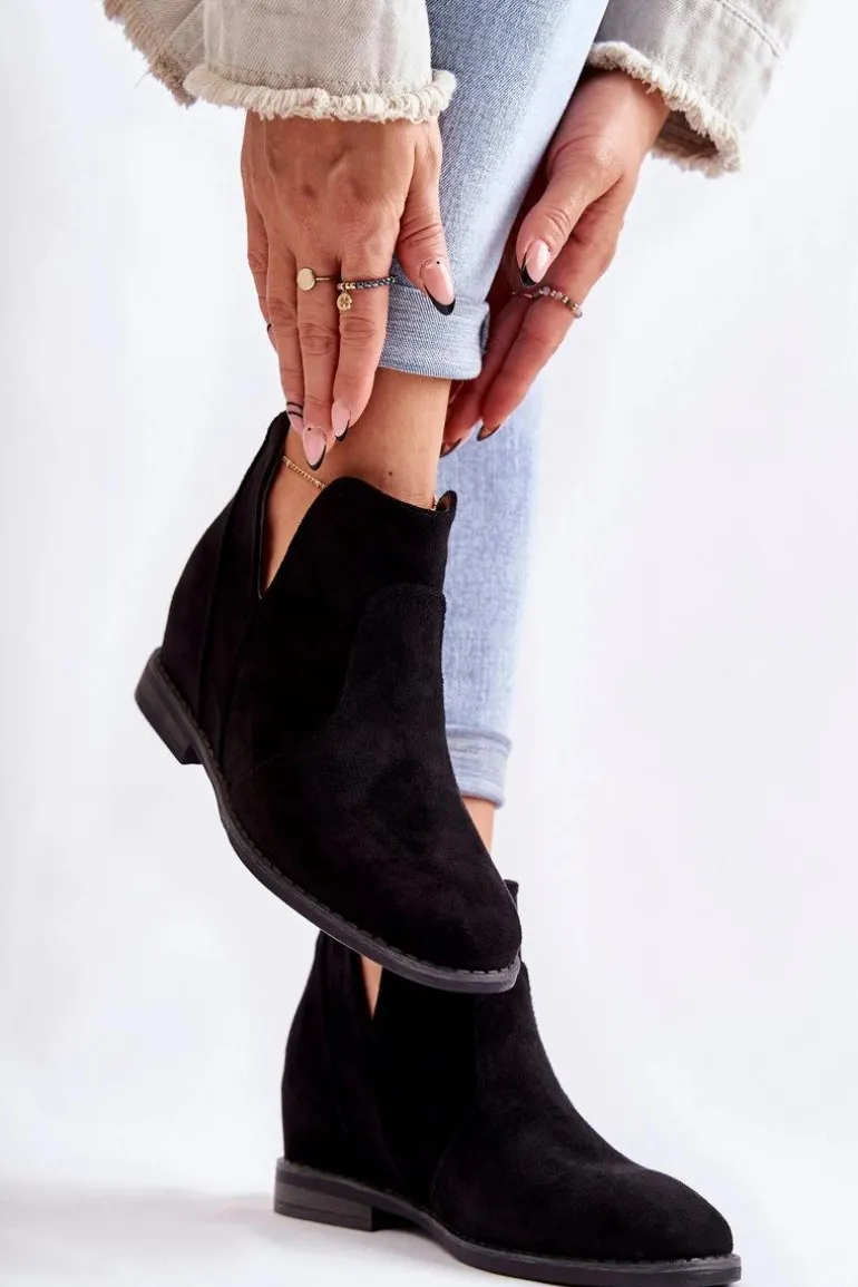 Cudowne botki na ukrytym koturnie i płaskim obcasie. Posiadają cholewkę za kostkę z wycięciami po bokach. Model wsuwany. Wykonane z wysokojakościowego eko zamszu. Miękka wkładka z eko skóry oraz usztywniany zapiętek pozwala na wygodne użytkowanie. Ten model sprawdzi się podczas wielu sezonów! Koniecznie powinnaś je mieć w swojej szafie! Przy wyborze rozmiaru prosimy sugerować się tabelą rozmiarów.