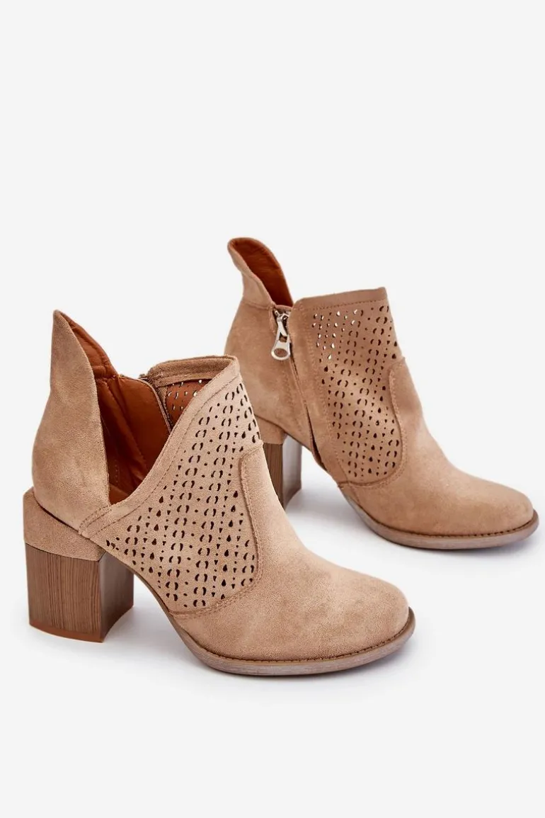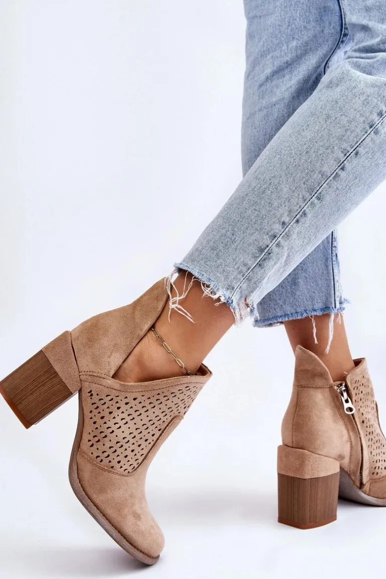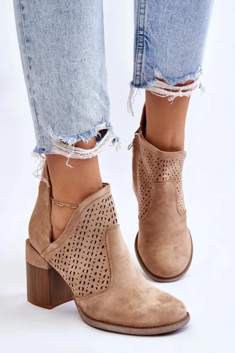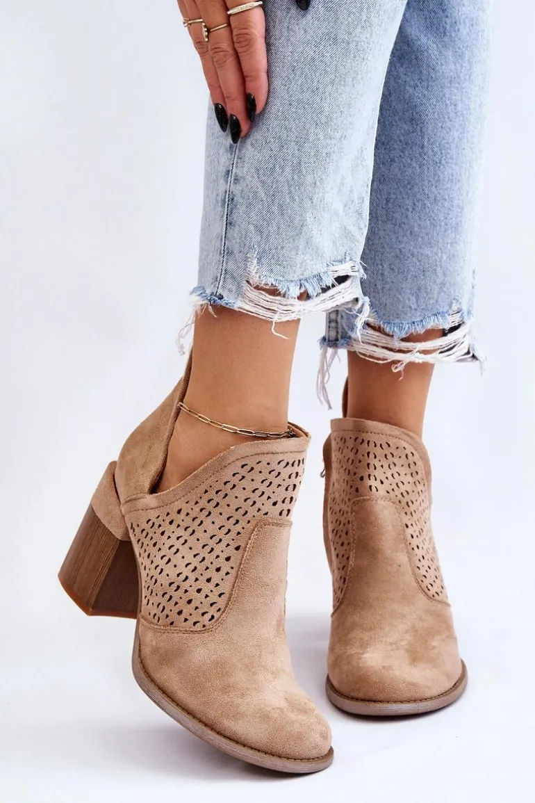 Zamszowe Botki Z Wycięciem Beżowe Layne