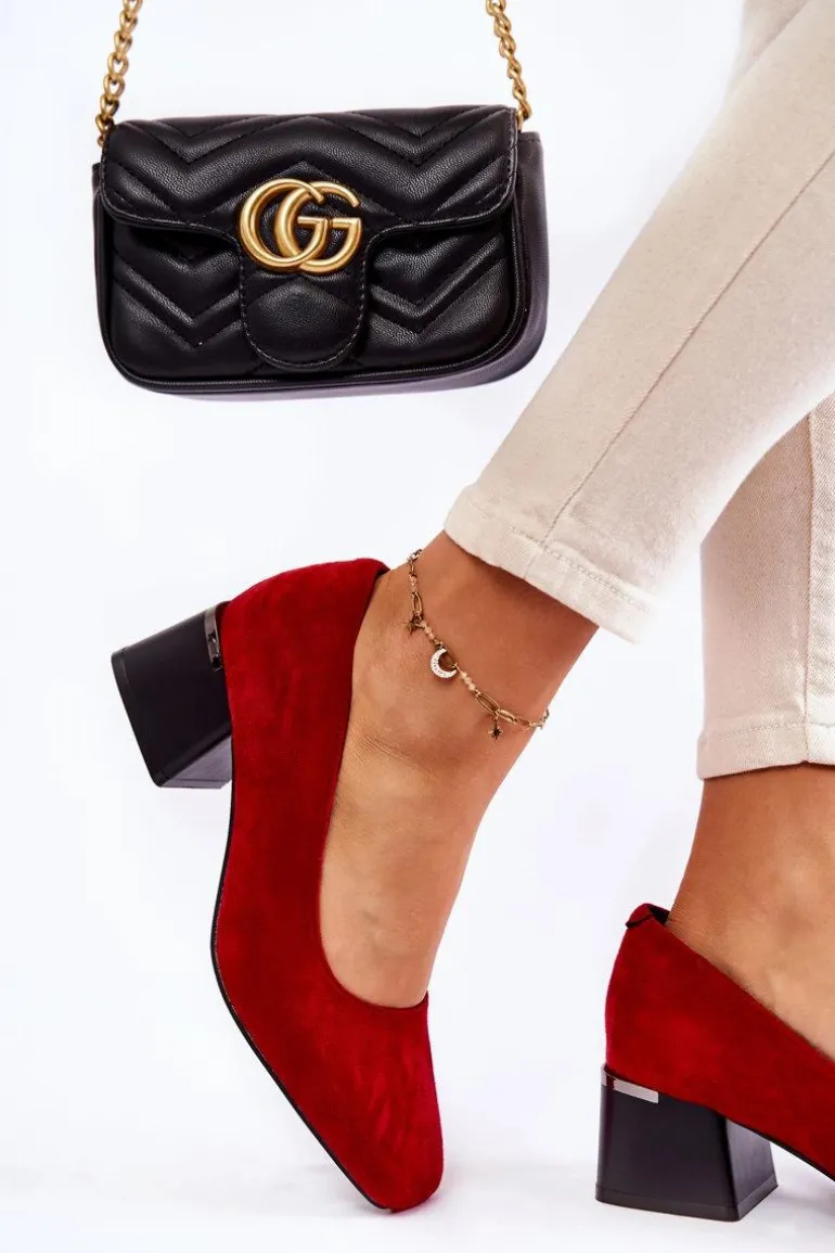 Klasyczne czółenka zostały wykonane z wysokiej jakości eko skórzanych materiałów. Posiadają usztywniany zapiętek oraz kwadratowy nosek. Świetny model do wielu stylizacji! Czółenka te posiadają miękką wkładkę wykonaną z naturalnej skóry, która zapewni wygodę podczas użytkowania. Zostały osadzone na obcasie w postaci klocka, co gwarantuje stabilizację. Przy wyborze rozmiaru prosimy sugerować się tabelą rozmiarów.