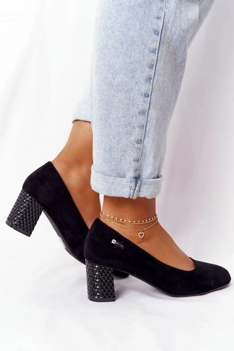 Zamszowe Czółenka Na Karbowanym Słupku Sergio Leone Czarne