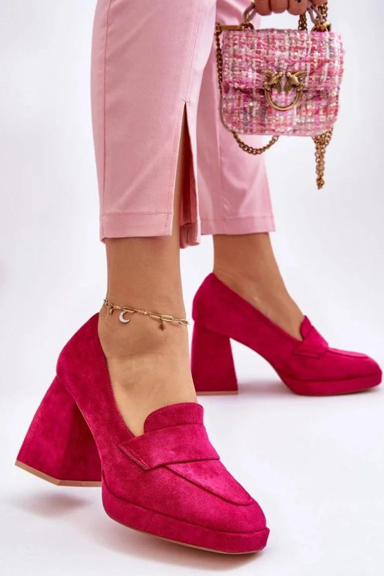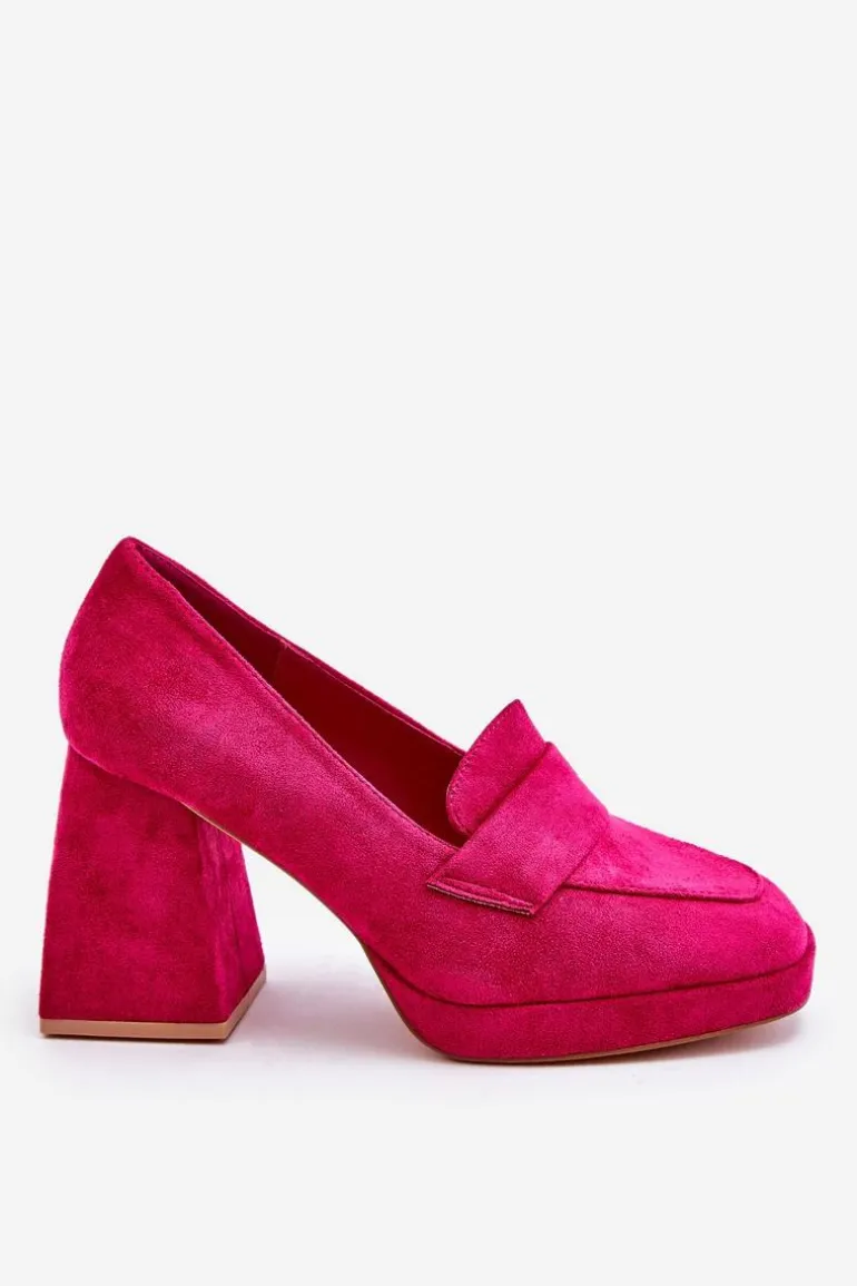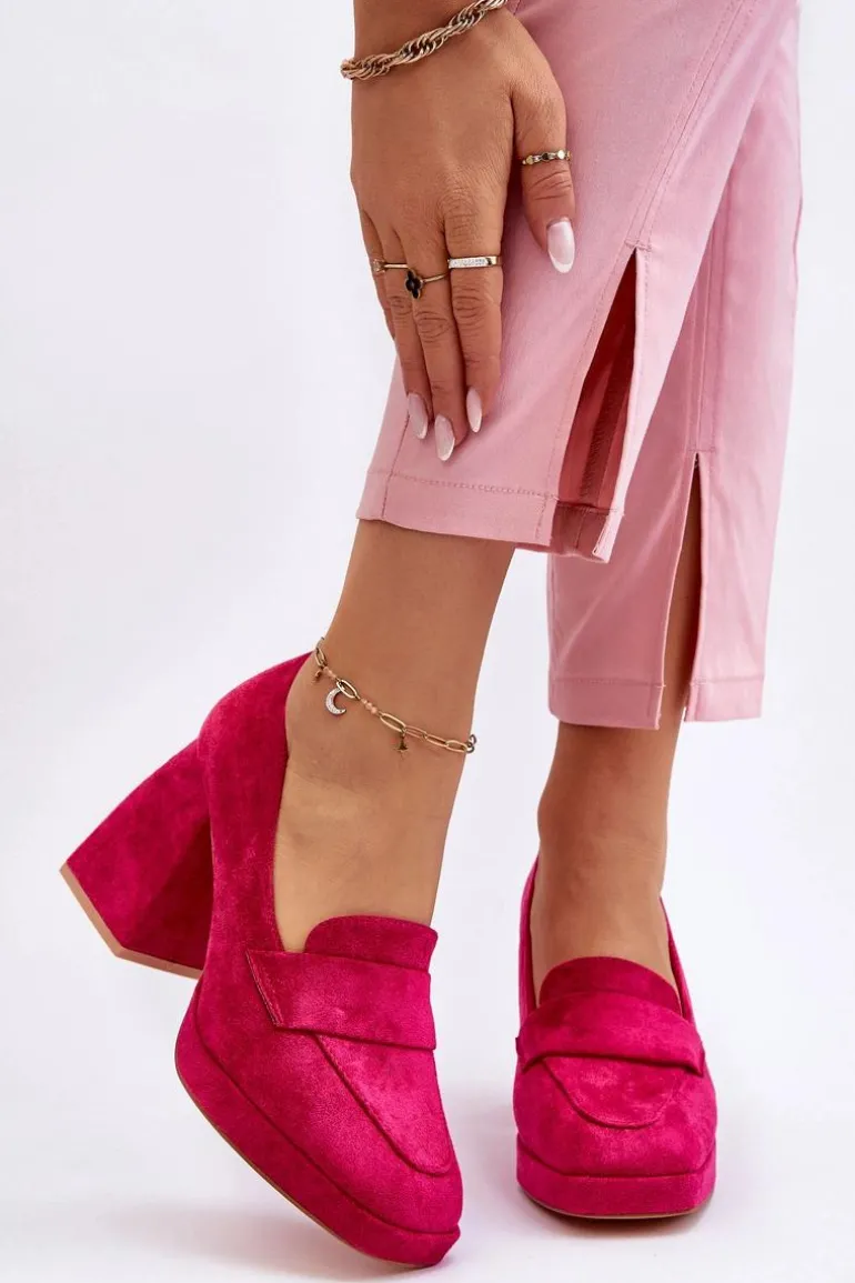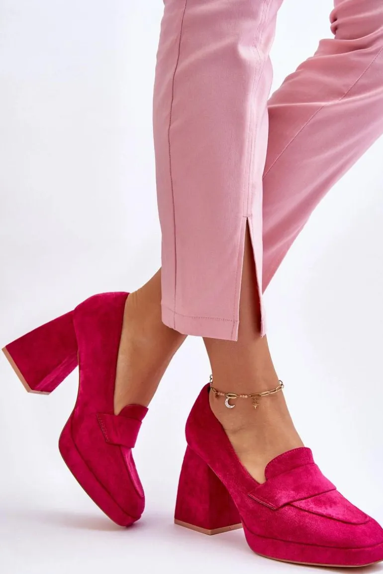 Zamszowe Czółenka Na Masywnym Obcasie I Platformie Fuksja Adriel