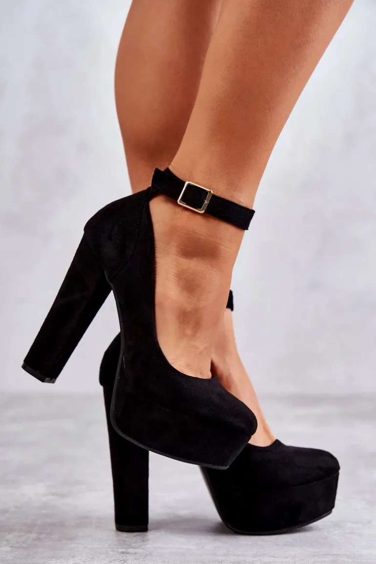 Modne czółenka zostały wykonane z eko zamszu. Model osadzony na wysokim słupku oraz masywnej platformie, który optycznie wydłuży i wysmukli nogi. Wkładka wykonana z eko skóry, która jest miękka i wygodna podczas użytkowania. Nosek delikatnie zaokrąglony. Czółenka zapinane na regulowany pasek ze sprzączką wokół kostki. Dodatkowo zapiętek jest usztywniany. Przy wyborze rozmiaru prosimy kierować się tabelą rozmiarów