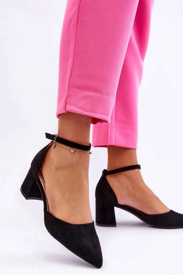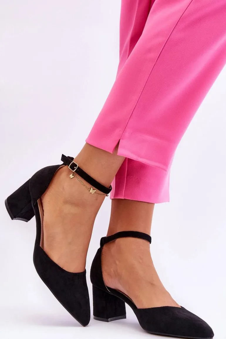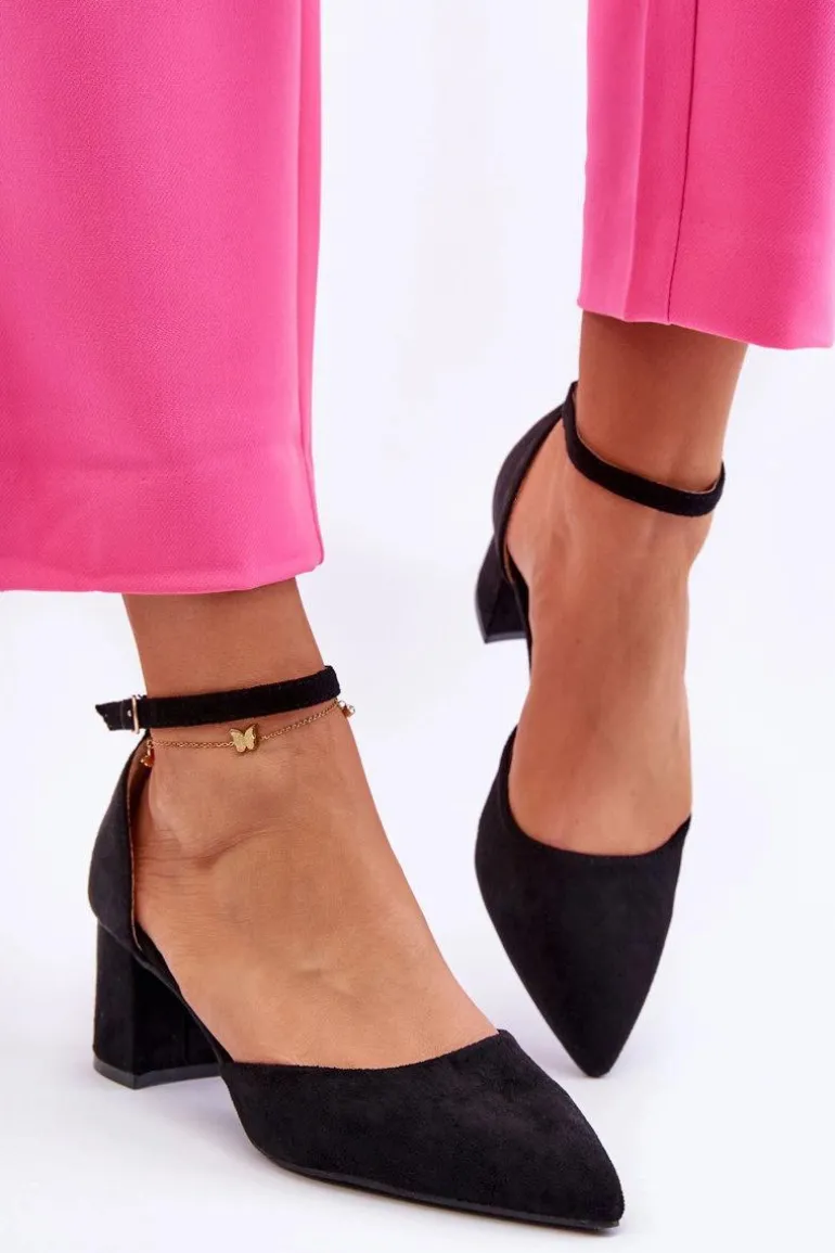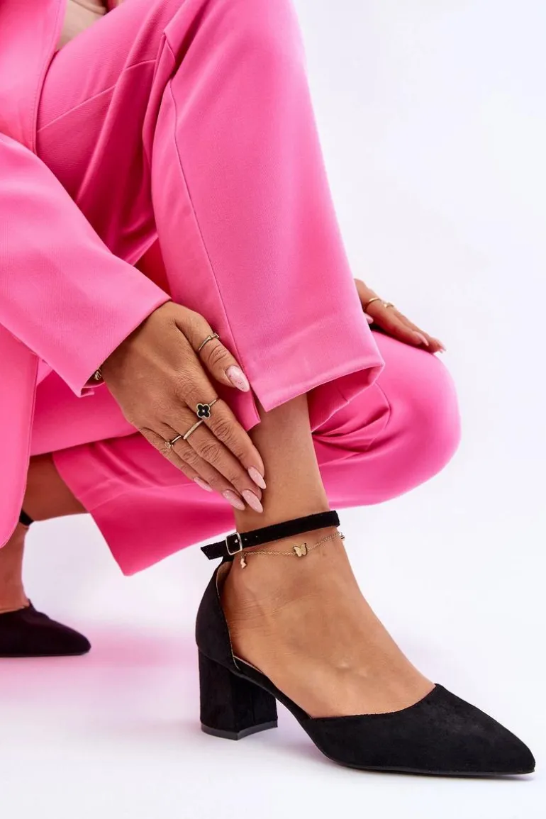 Modne czółenka damskie zostały wykonane z miłego w dotyku eko zamszu. Nosek w szpic oraz obcas w postaci słupka optycznie wysmuklą nogi. Dodatkowo buty posiadają usztywniany zapiętek. Czółenka posiadają regulowany paseczek zapinany na sprzączkę. Miękka wkładka z eko skóry zapewni wygodne użytkowanie obuwia. Przy wyborze rozmiaru prosimy sugerować się tabelą rozmiarów.