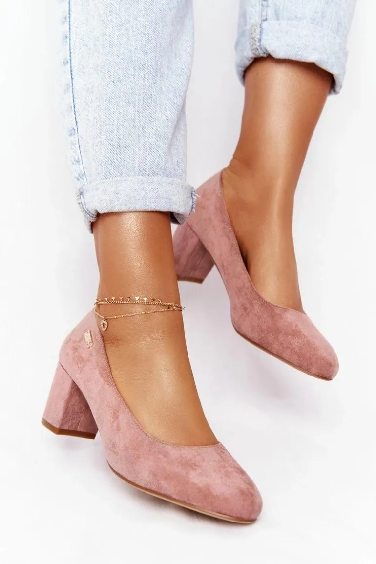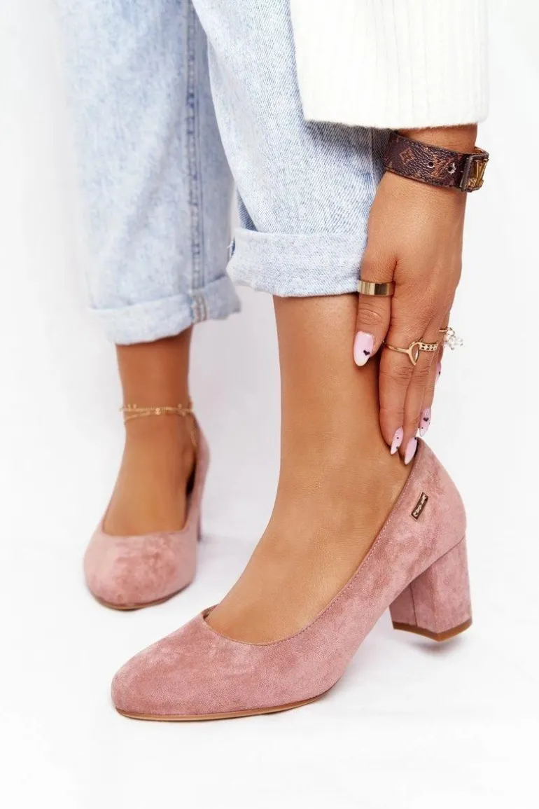 Zamszowe Czółenka Na Słupku Sergio Leone PB178 Różowe