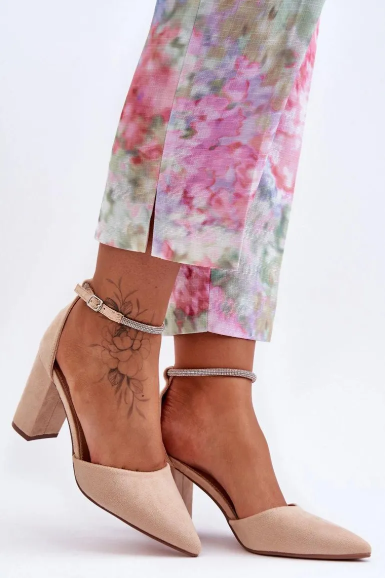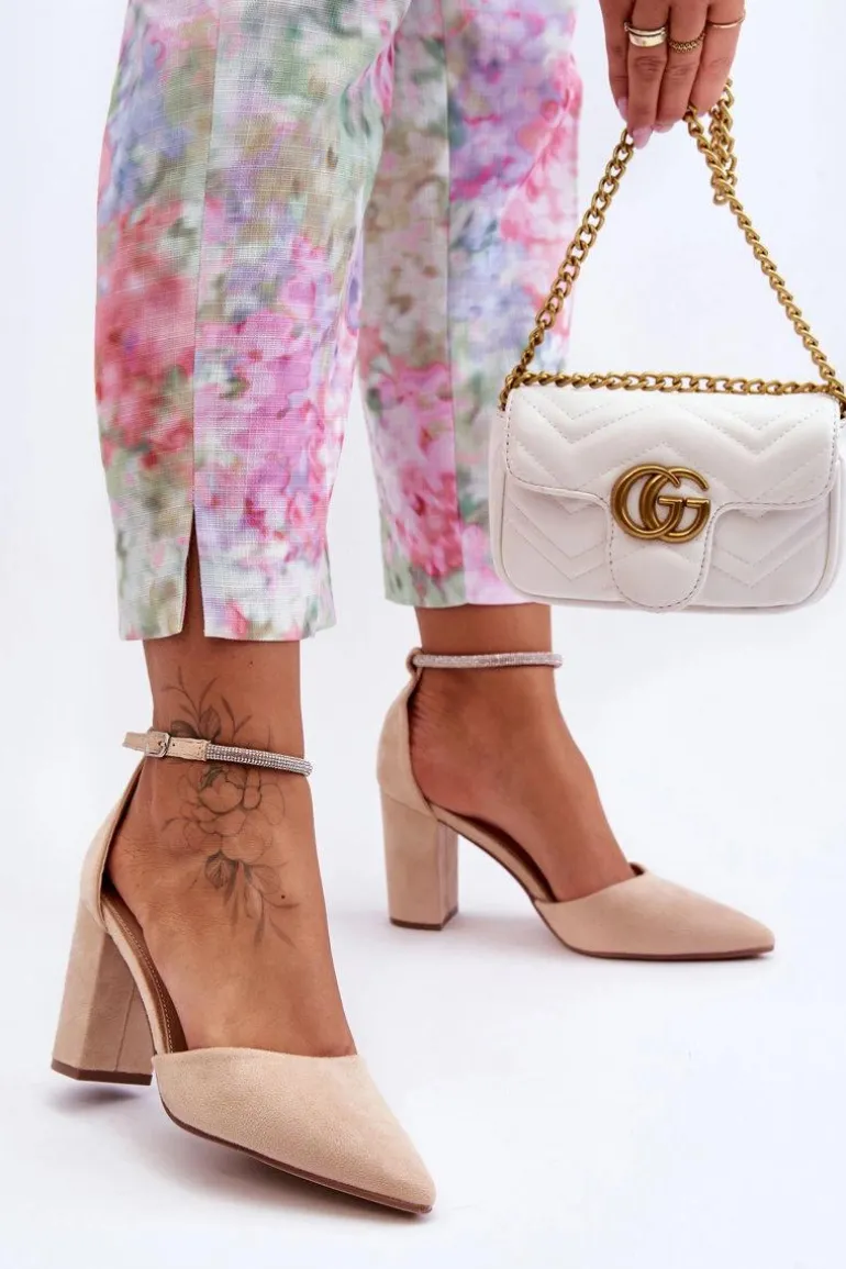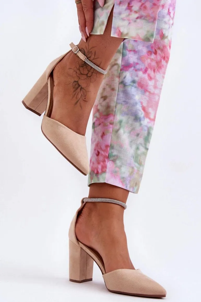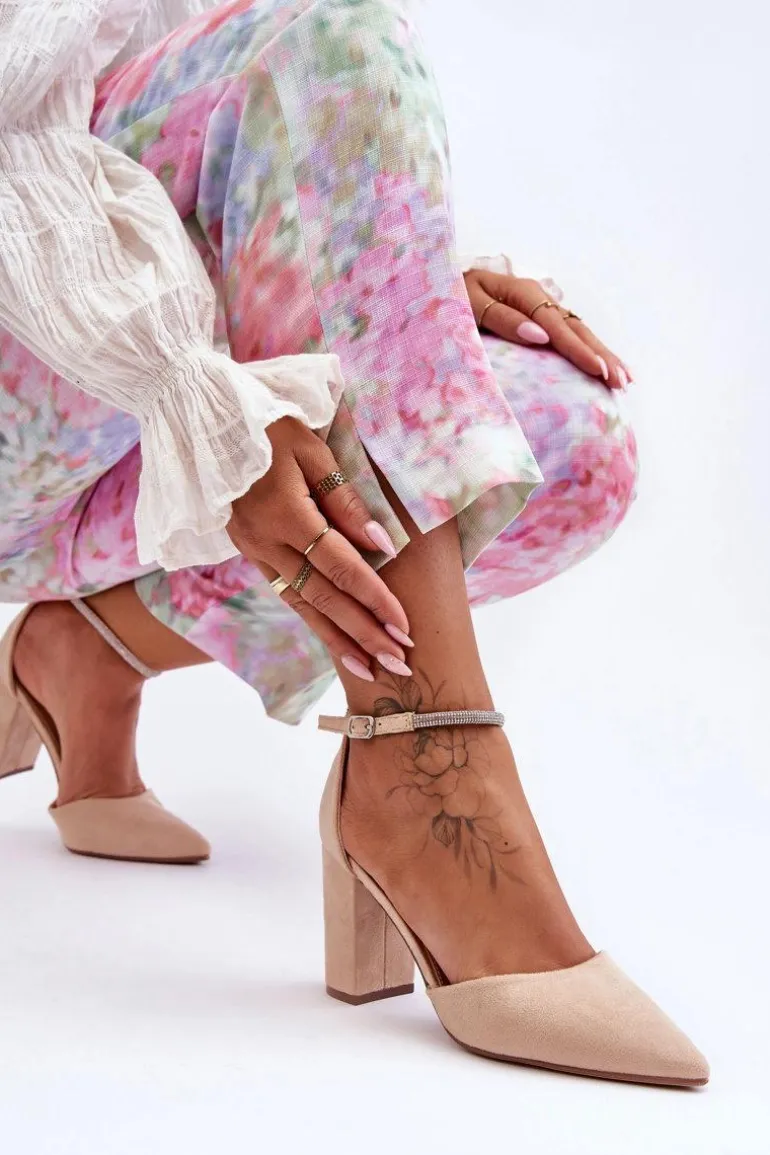 Zamszowe Czółenka Z Cyrkoniami Beżowe Diamond
