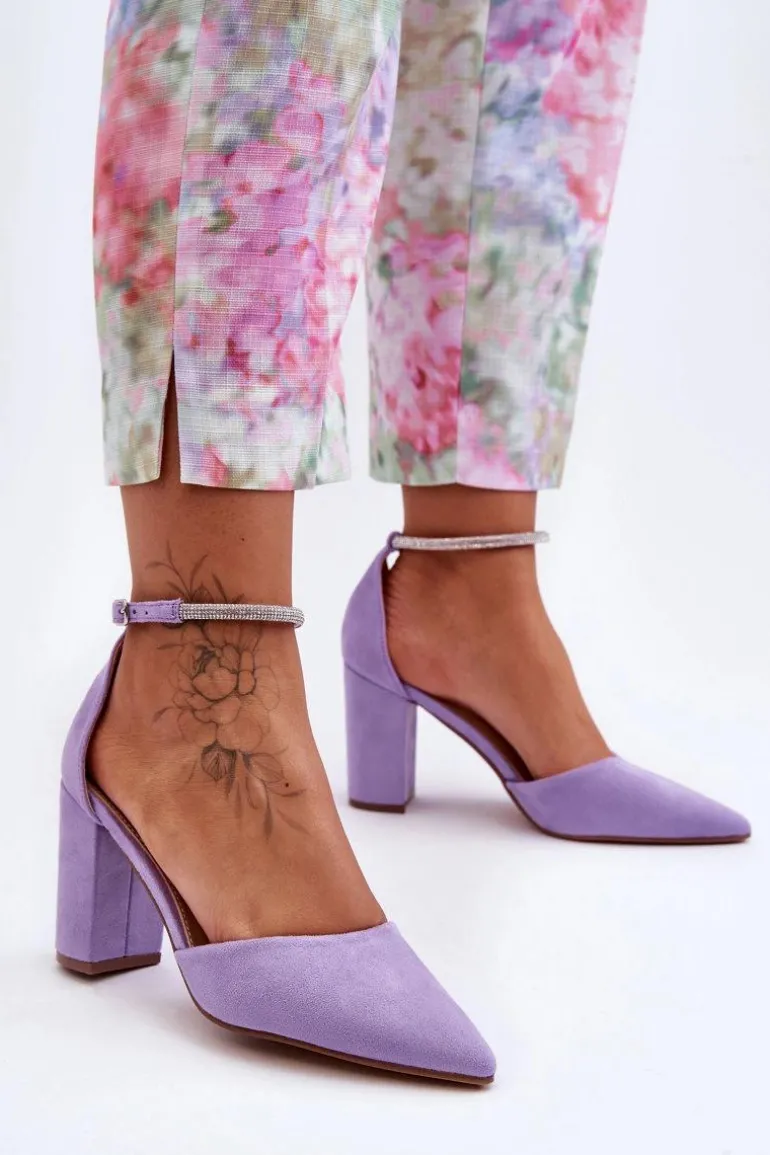 Zamszowe Czółenka Z Cyrkoniami Fioletowe Diamond